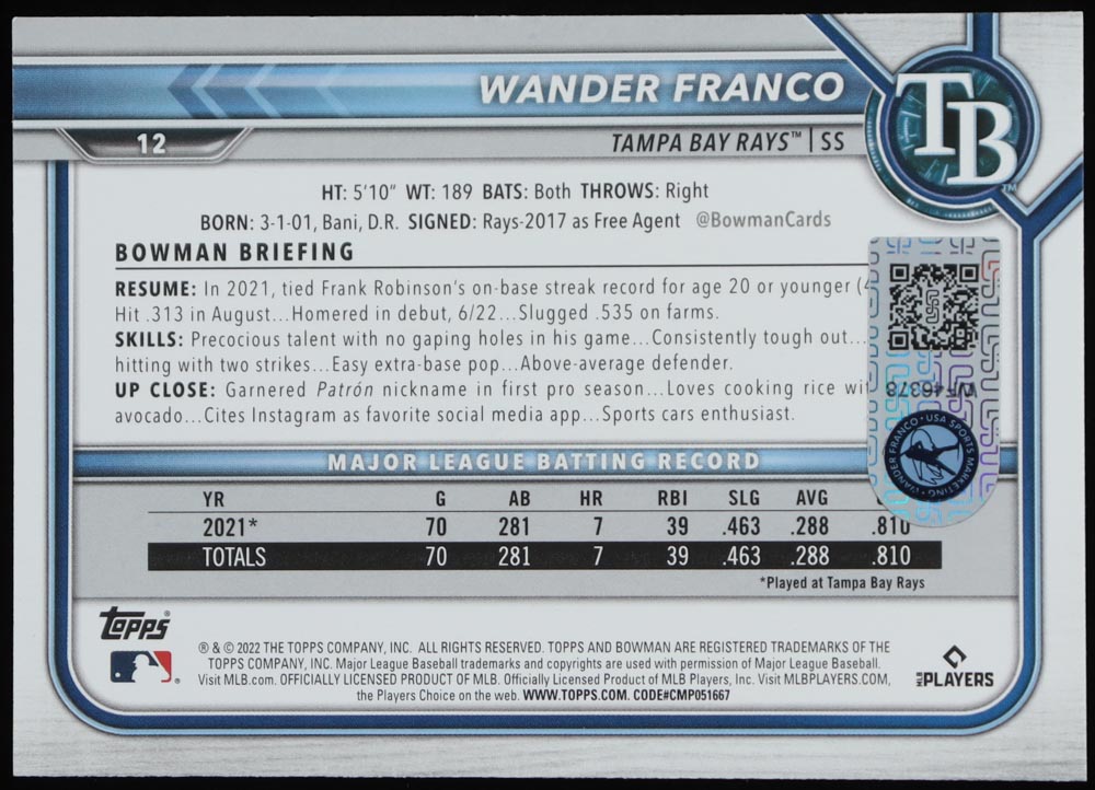 Wander Franco Signed 2022 Bowman #12 RC (Franco)