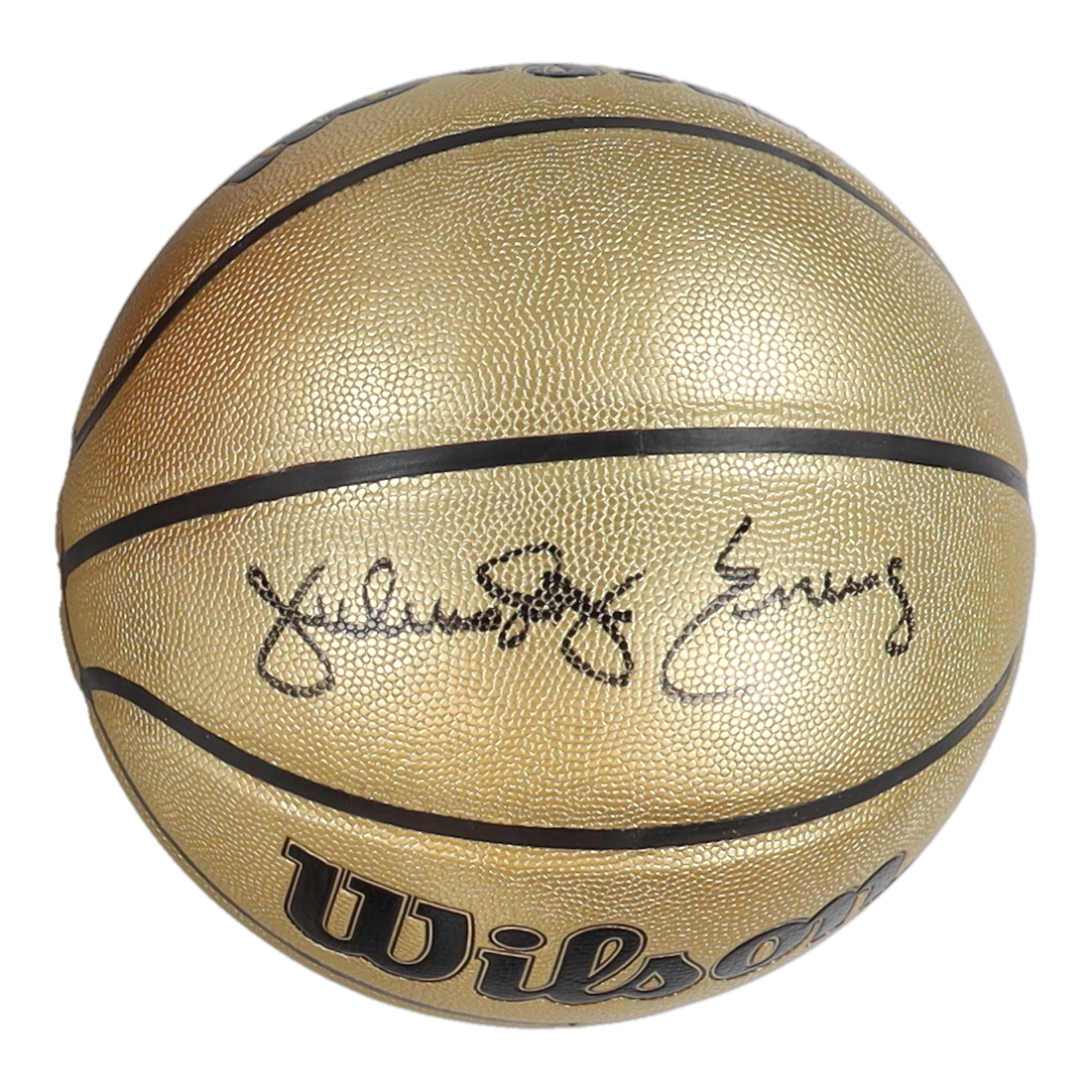 Wilson gold NBA basketball. Hand-signed by Julius "Dr. J" Erving (Philadelphia 76ers, HOF).