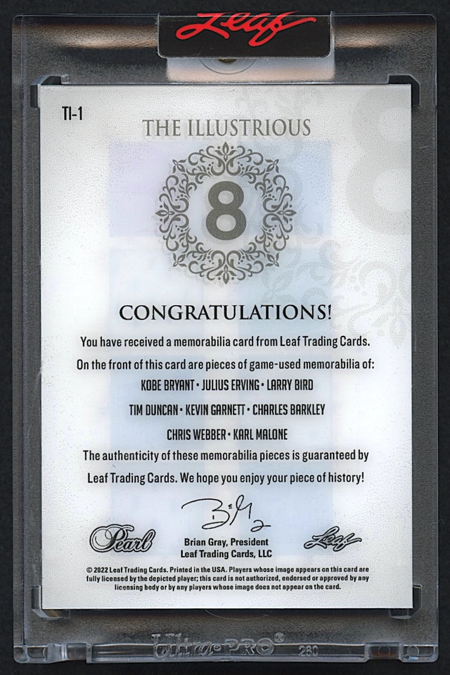 Kobe Bryant / Julius Erving / Larry Bird / Tim Duncan / Kevin Garnett / Charles Barkley / Chris Webber / Karl Malone 2021-22 Leaf Pearl The Illustrious 8 #TI-1 Relic #1/6