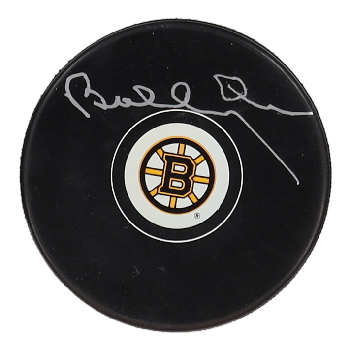 Boston Bruins logo hockey puck has been hand-signed by Bobby Orr (Boston Bruins, HOF).