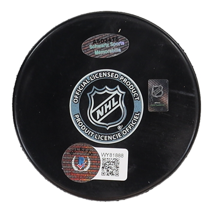 The autograph includes an official Beckett Authentication Services serially numbered hologram as well as a Schwartz Sports hologram and COA for authenticity purposes. The signing of this item was witnessed by Beckett.