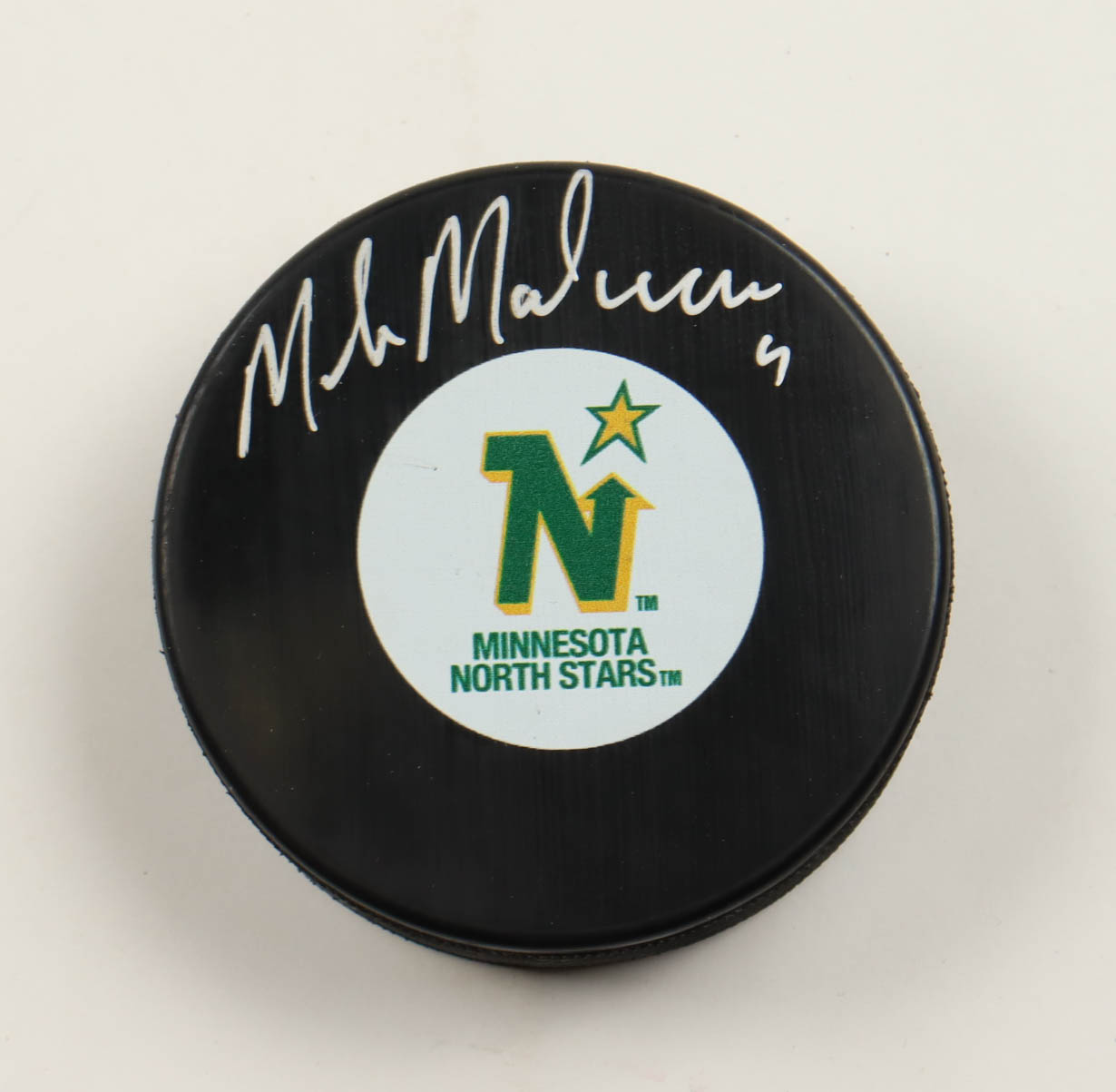 Mike Modano Signed North Stars Logo Hockey Puck (Schwartz & Frozen Pond)