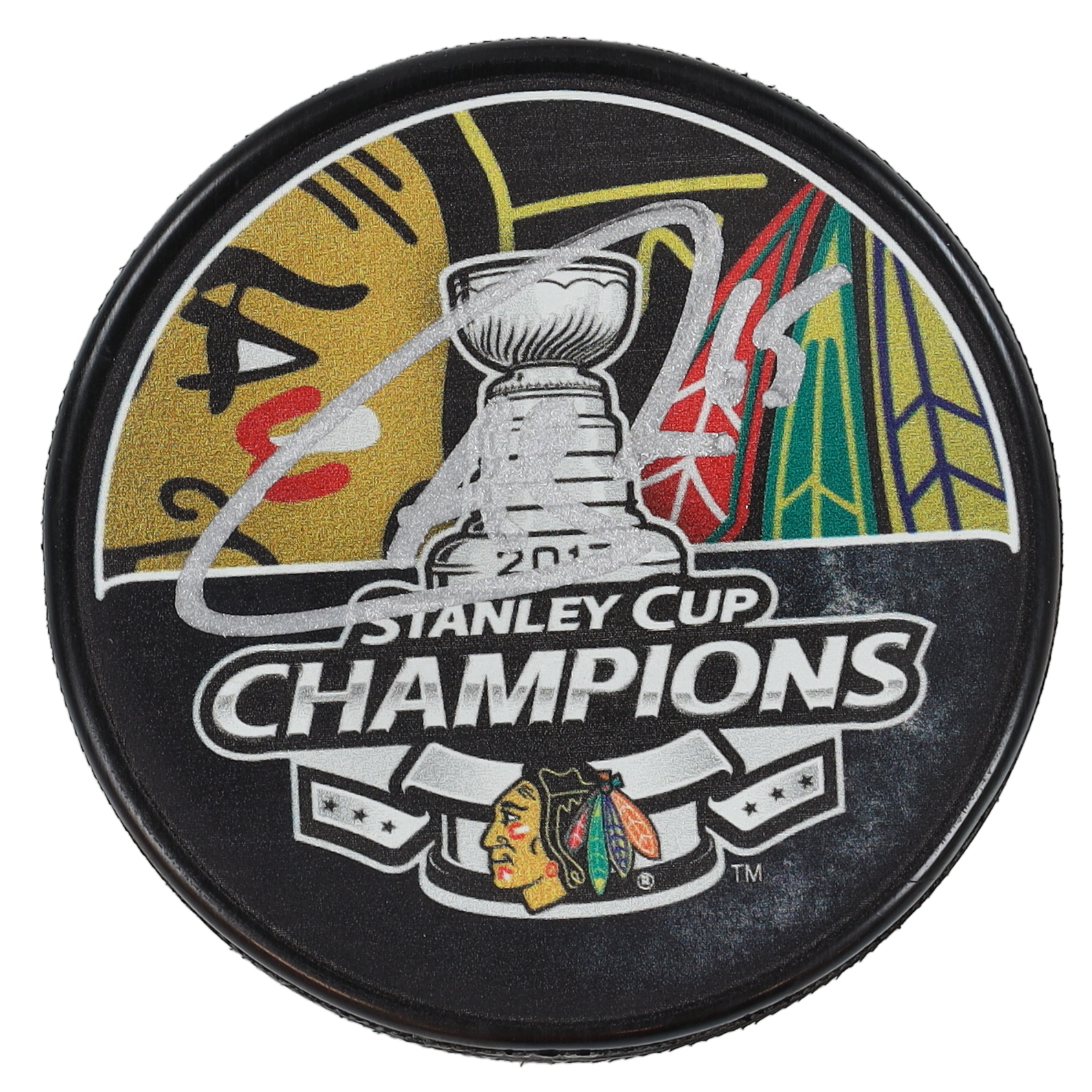Chicago Blackhawks 2015 Stanley Cup Logo Hockey Puck. Hand-signed by Andrew Shaw.