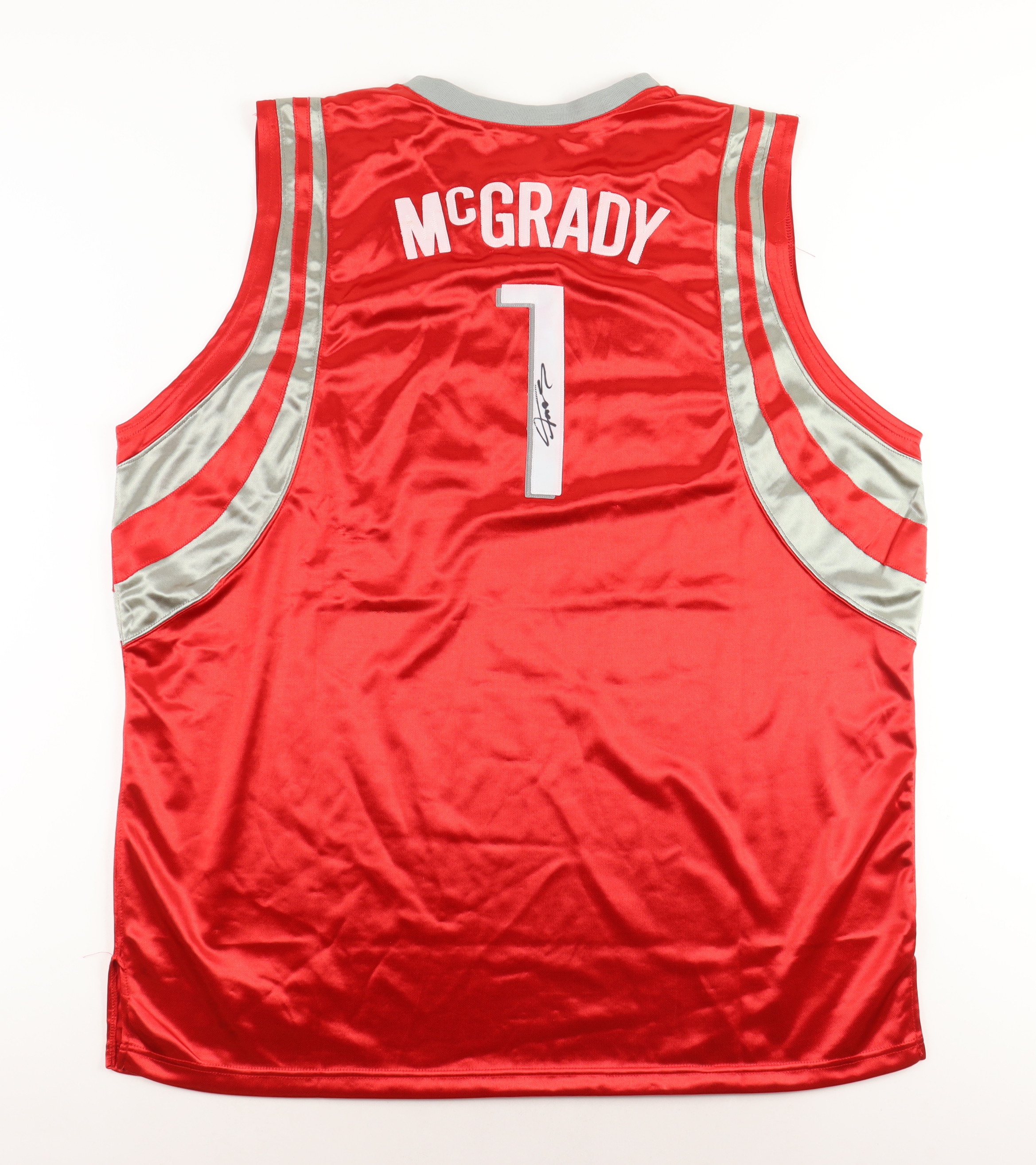 Reebok jersey with everything sewn on, size XL. Hand-signed by Tracy McGrady (Houston Rockets, HOF).