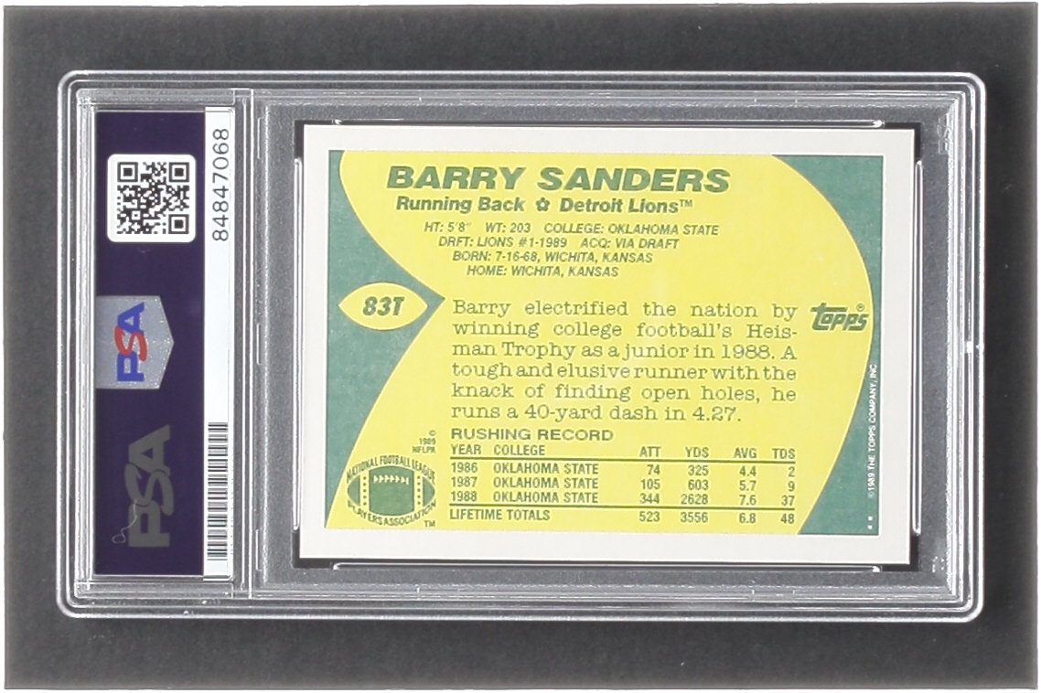 Barry Sanders Signed 1989 Topps Traded #83T RC (PSA | Auto 10)