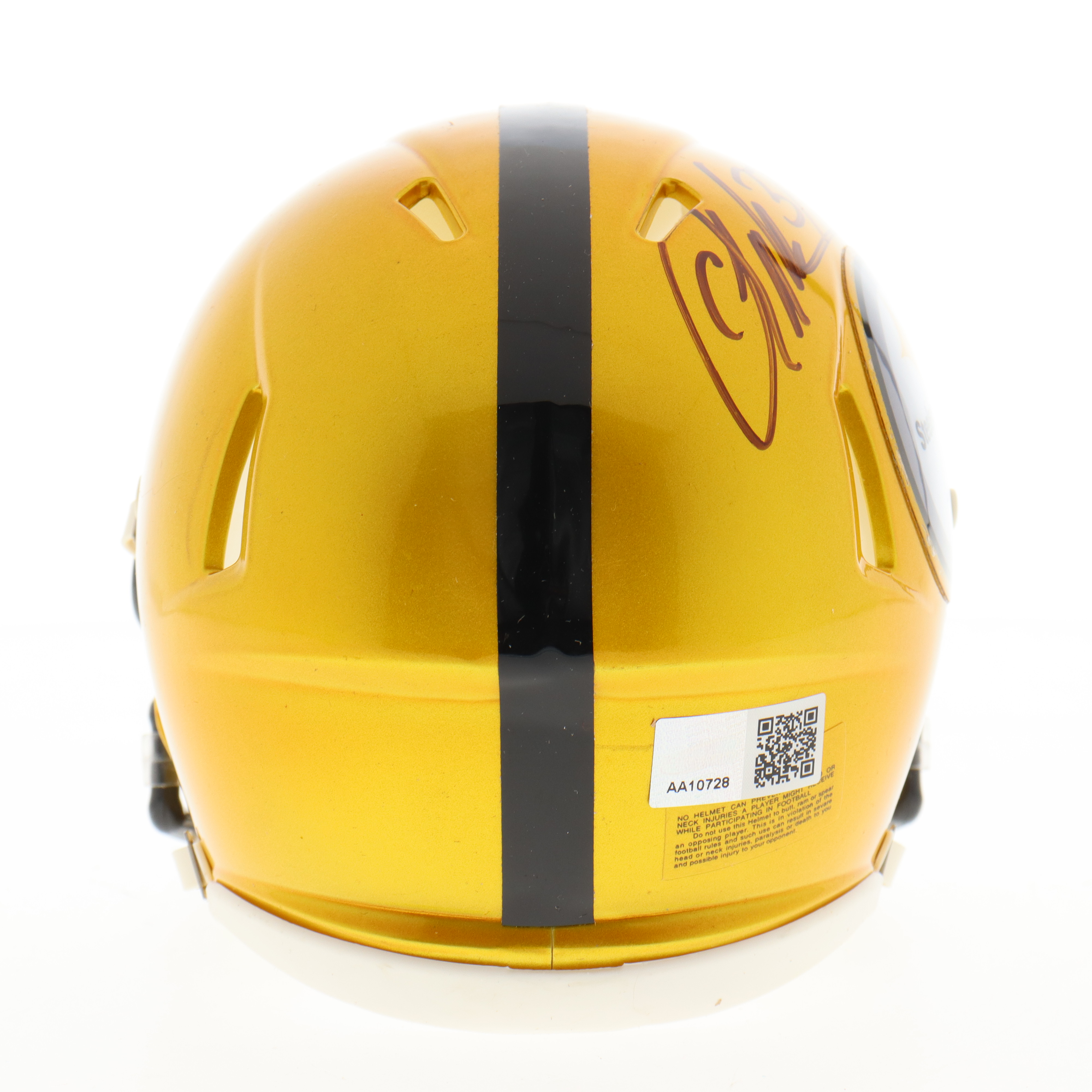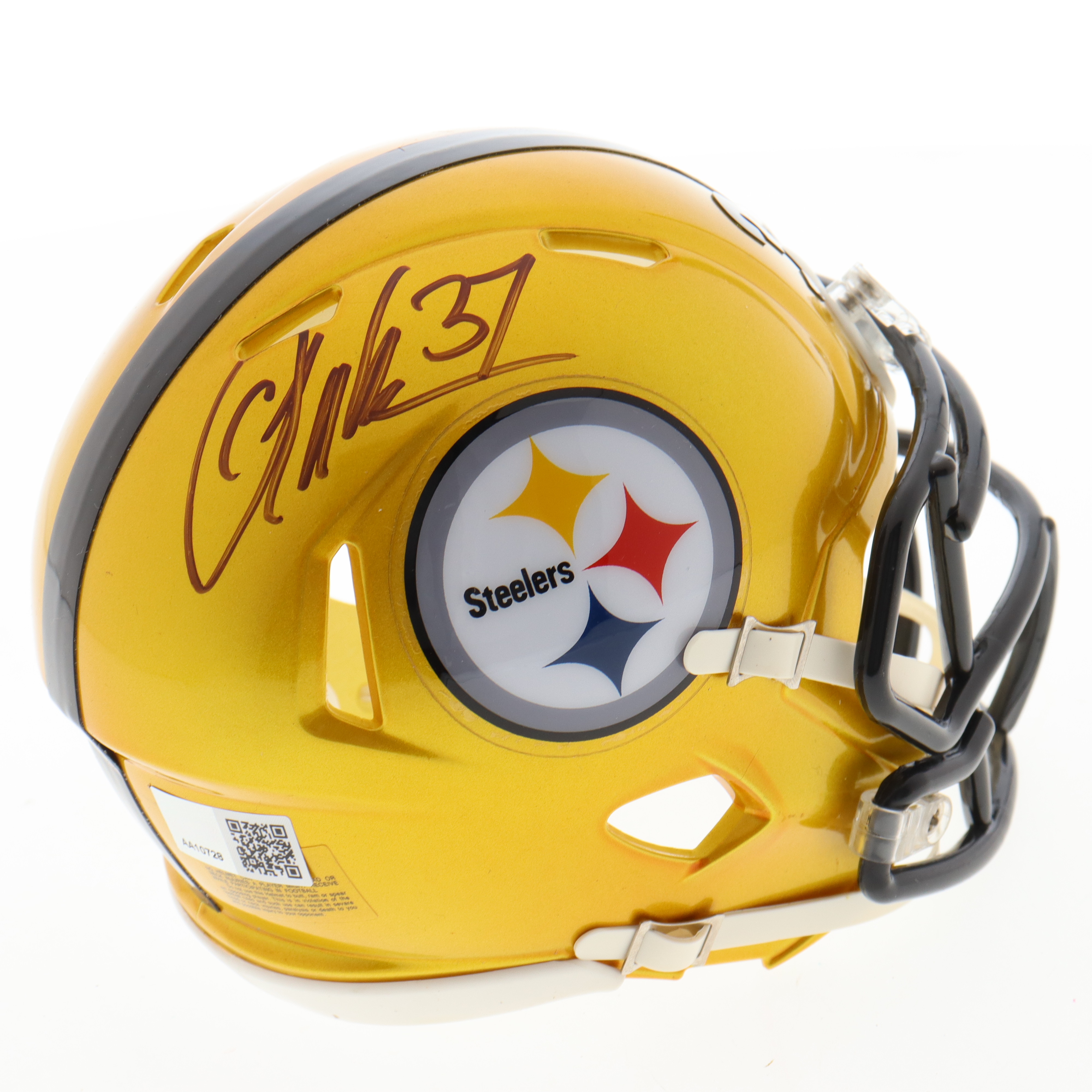 Riddell Pittsburgh Steelers flash alternate speed mini helmet. Has been hand-signed by Carnell Lake.