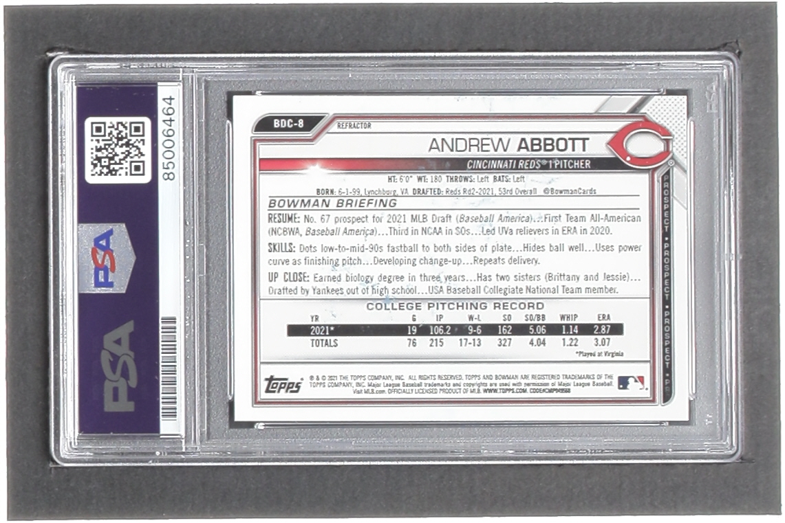 Andrew Abbott Signed 2021 Bowman Chrome Draft Refractors #BDC8 (PSA)
