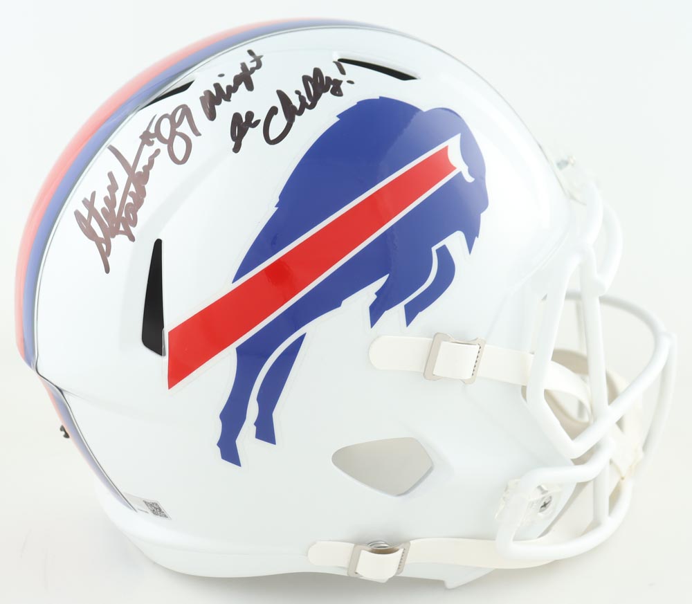 Riddell Buffalo Bills Full-Size Replica Speed helmet. Hand-signed and inscribed by Steve Tasker.