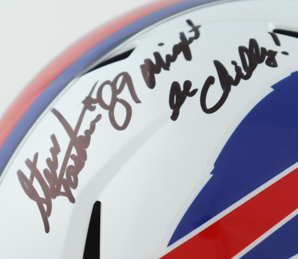 Steve Tasker Signed Bills Full-Size Speed Helmet Inscribed "Might Be Chilly!" (TSE)