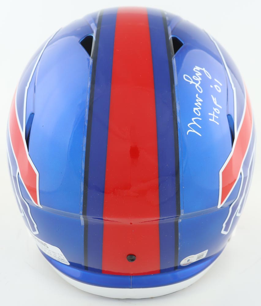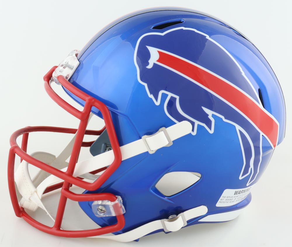 Riddell Buffalo Bills full-size replica flash alternate speed helmet. Hand-signed and inscribed by Marv Levy (HOF) and Bill Polian (HOF).