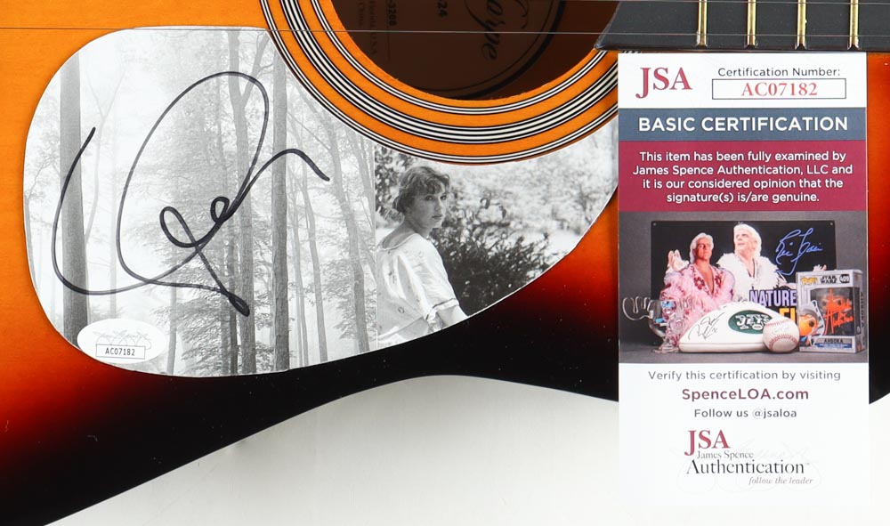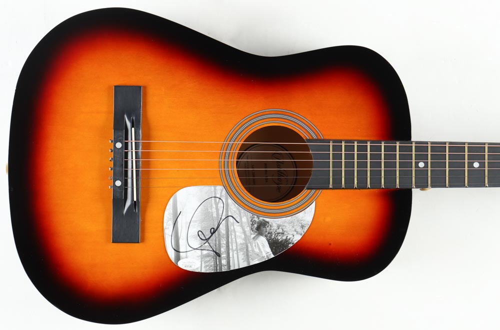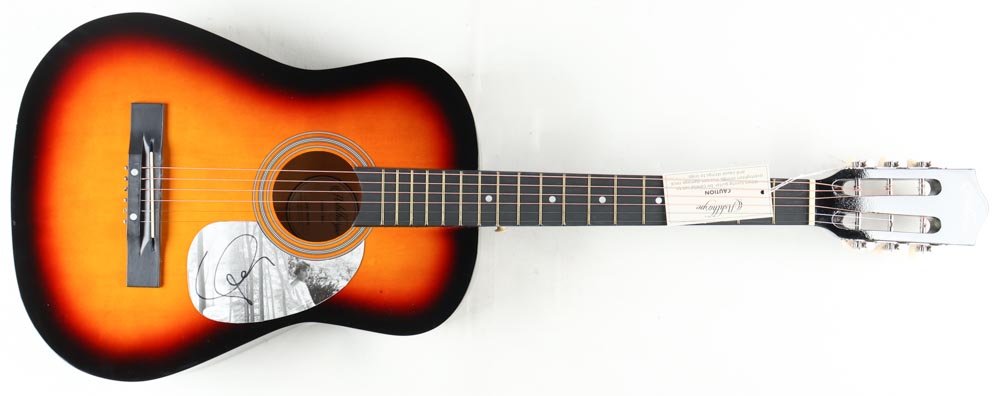 Acoustic guitar measures 39" in length and has been hand-signed on the pickguard by Taylor Swift.