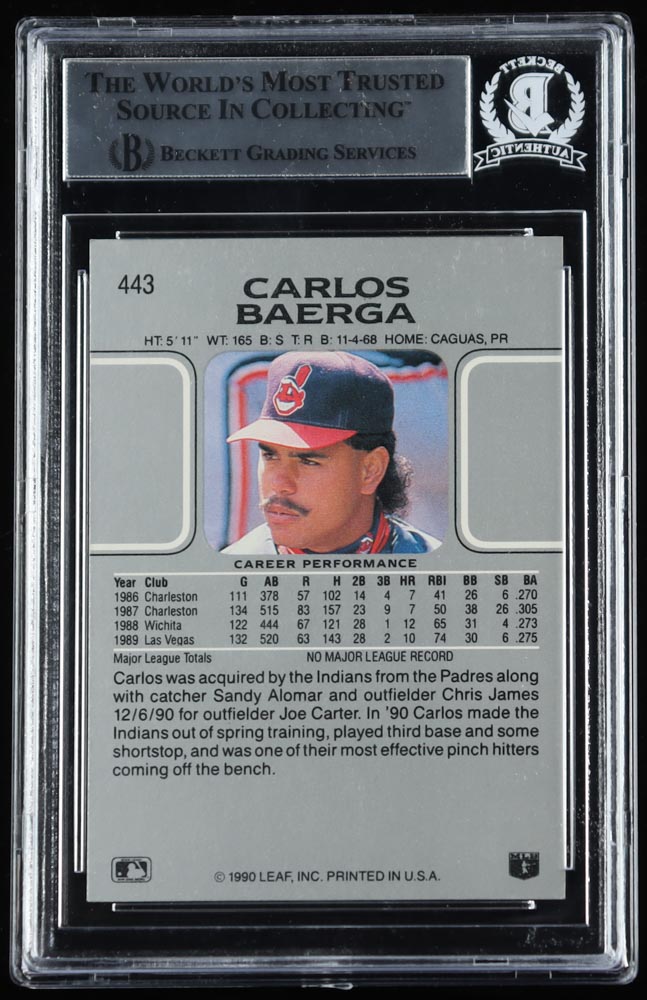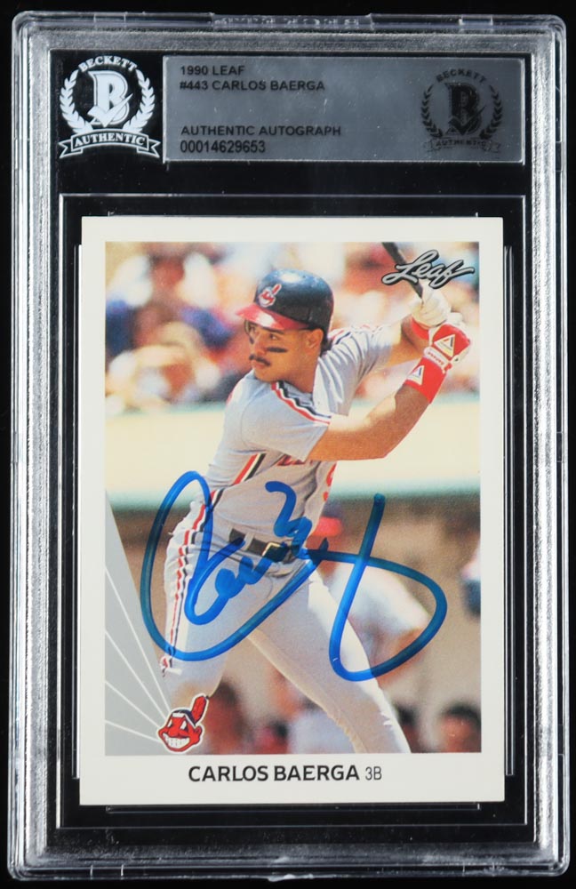 Carlos Baerga Signed 1990 Leaf #443 RC (BGS)