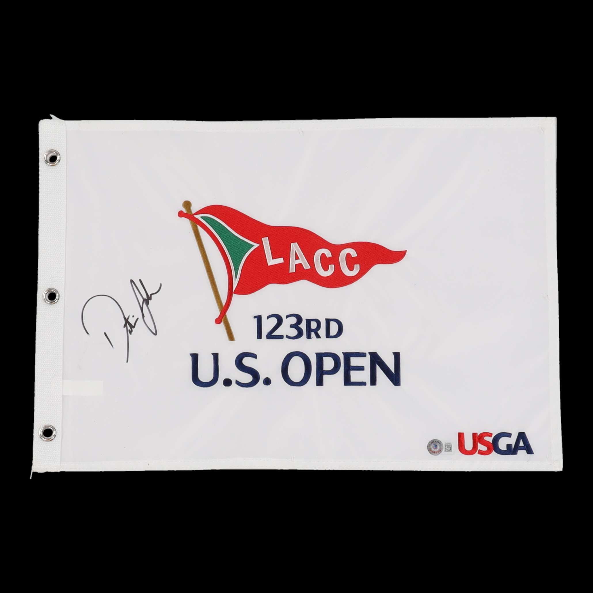 Dustin Johnson Signed 123rd U.S. Open Pin Flag (Beckett)