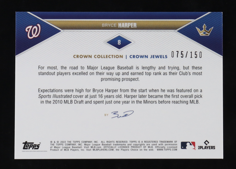 Bryce Harper 2022 Topps X Bobby Witt Jr. Crown Collection Crown Jewels Relics Royals Light Blue #8 #075/150