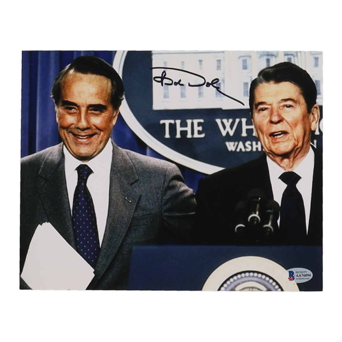Photo measures 8" x 10" in size and has been hand-signed by Bob Dole (D. 2021).