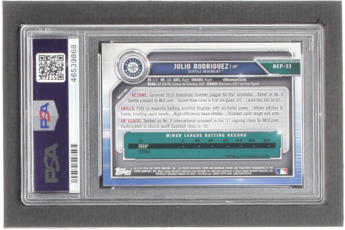 Julio Rodriguez 2019 Bowman Chrome Mega Box Prospects Refractors #BCP33 RC (PSA 10)