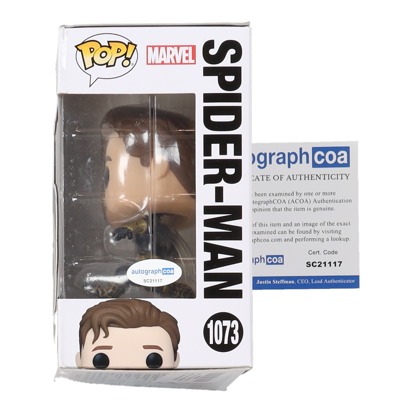 Tom Holland Signed "Spider-Man: No Way Home" #1073 Spider-Man Funko Pop! Vinyl Figure (AutographCOA)