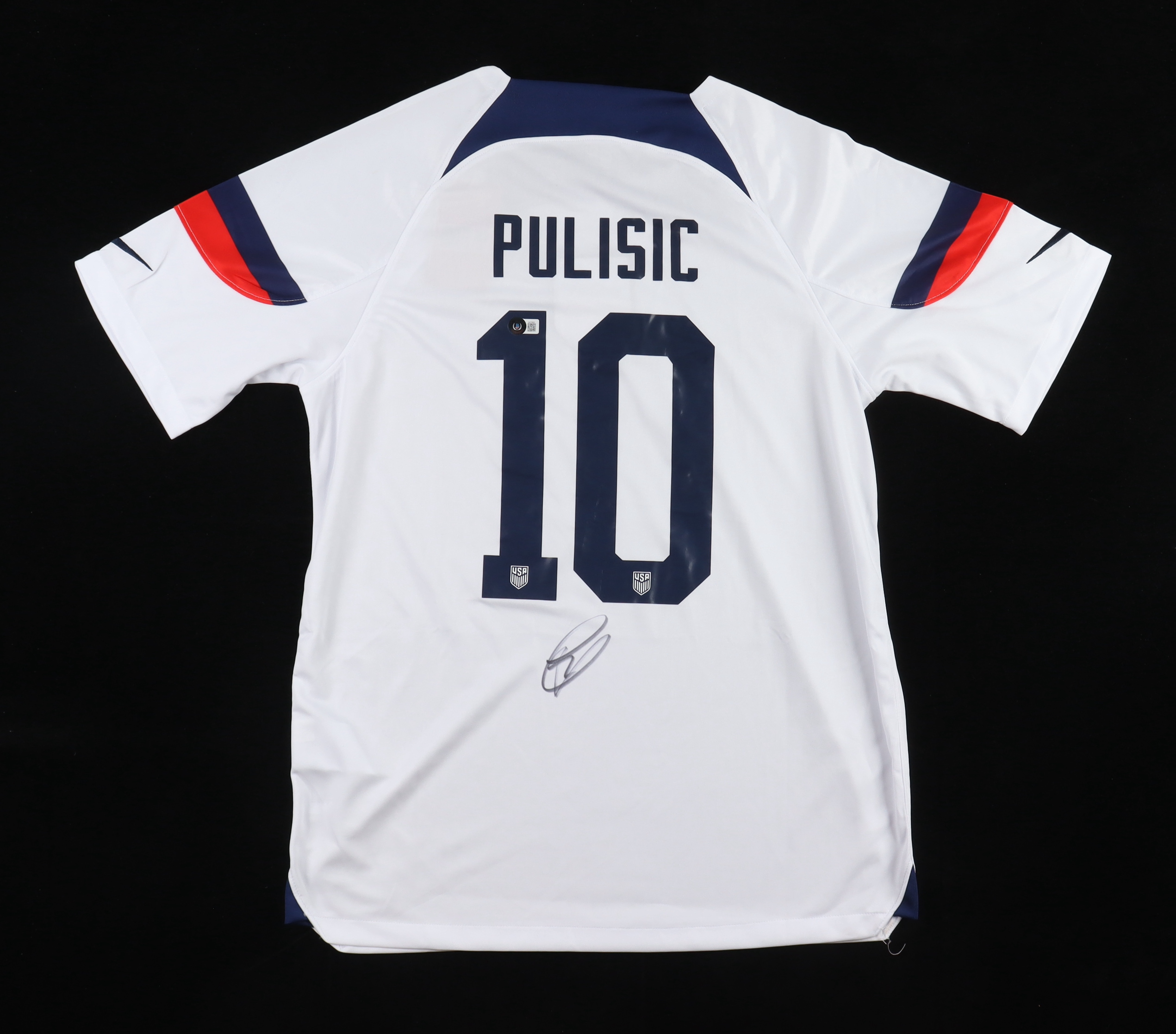 Nike jersey everything is printed on, size L. Hand-signed by Christian Pulisic.