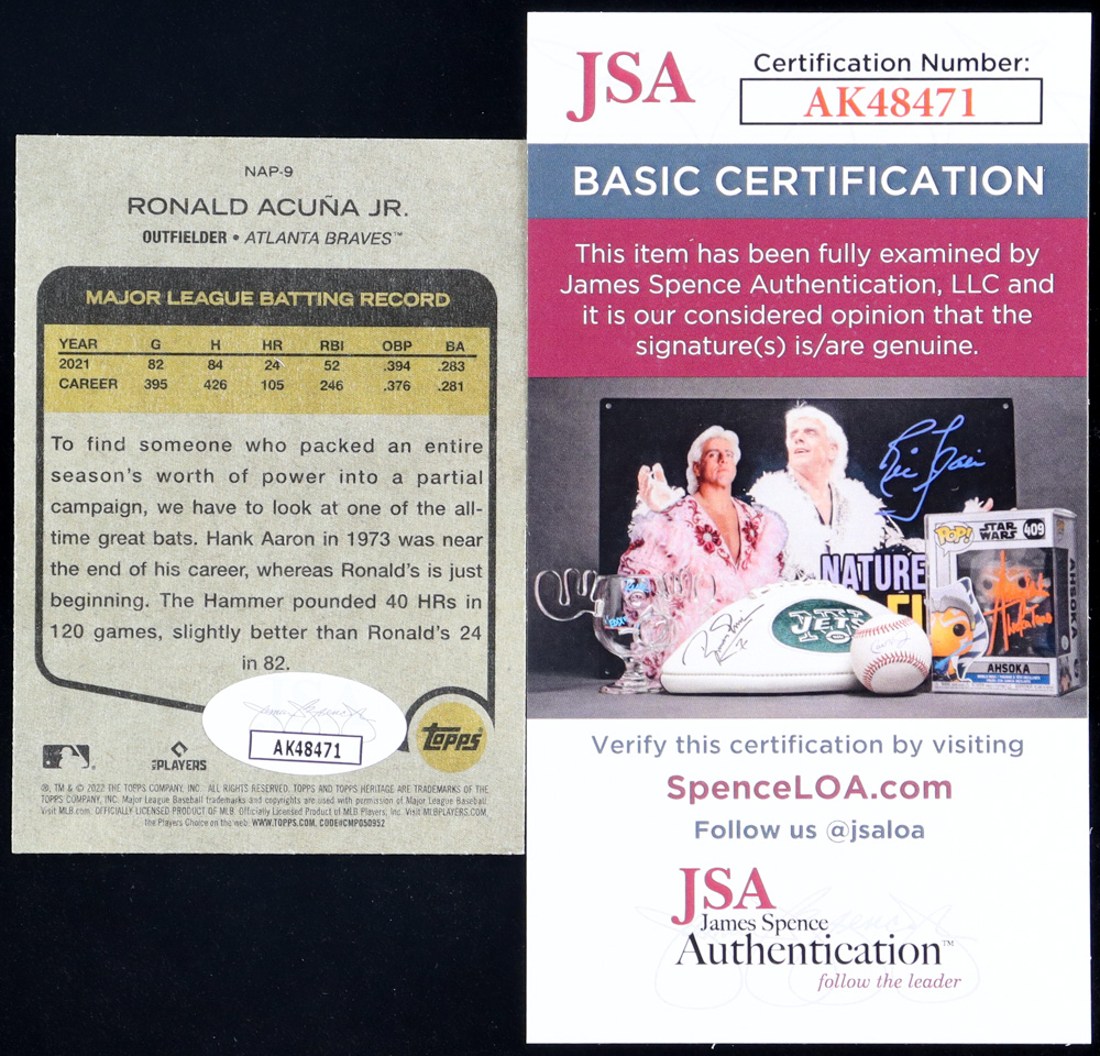 Ronald Acuna Jr. Signed 2022 Topps Heritage New Age Performers #NAP9 (JSA)