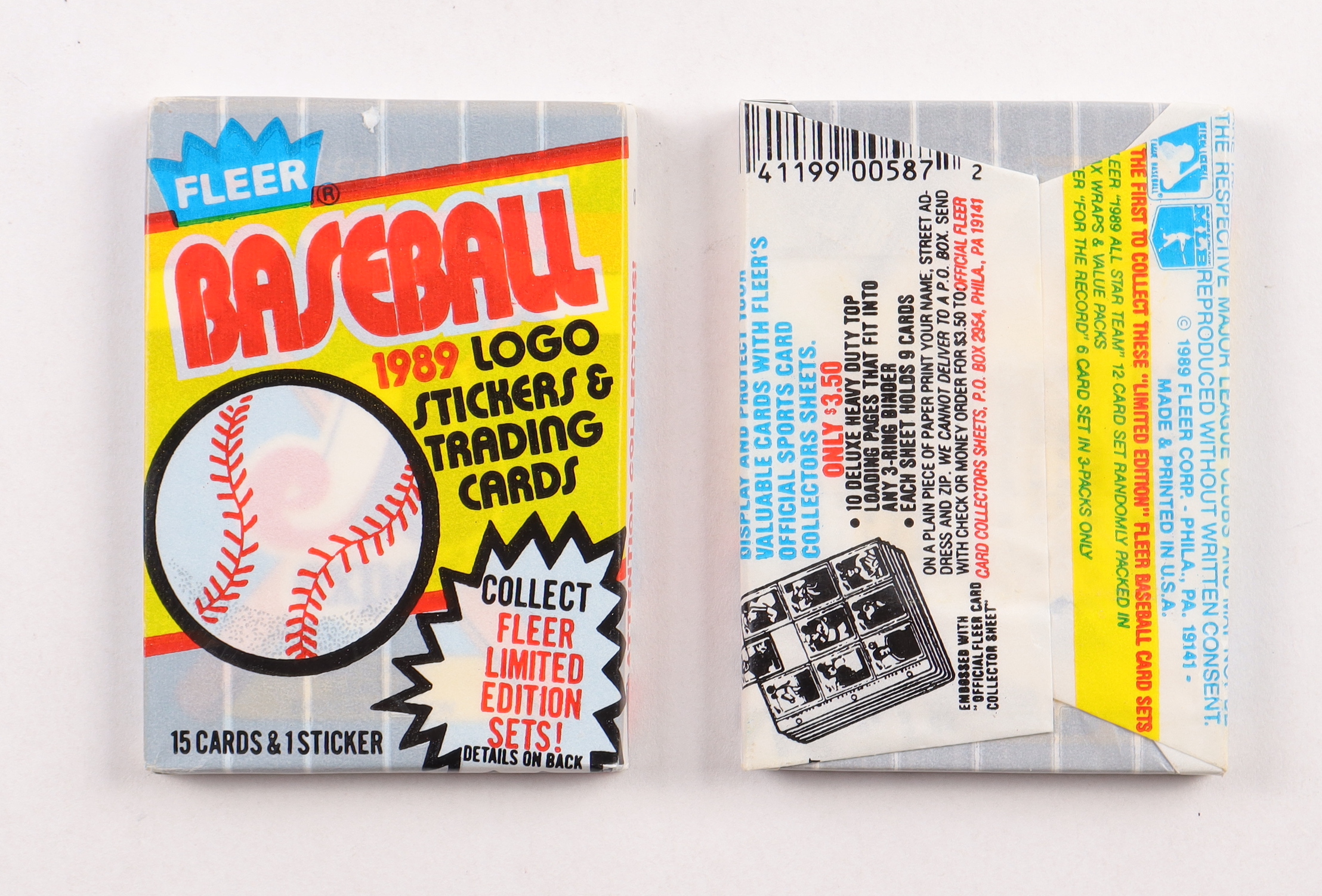 This set consists of 660 cards. Rookie Cards in this set include Craig Biggio, Ken Griffey Jr., Randy Johnson, Gary Sheffield, and John Smoltz. An interesting variation was discovered in late 1999 by Beckett Grading Services on the Randy Johnson RC (card number 381). It seems the most common version features a crudely-blacked out image of an outfield billboard. A scarcer version clearly reveals the words "Marlboro" on the billboard. One of the hobby's most notorious errors and variations hails from this product. Card number 616, Billy Ripken, was originally published with a four-letter word imprinted on the bat. Needless to say, this caused quite a stir in 1989 and the card was quickly reprinted. Because of this, several different variations were printed with the final solution (and the most common version of this card) being a black box covering the bat knob. The first variation is still actively sought after in the hobby and the other versions are still sought after by collectors seeking a "master" set.