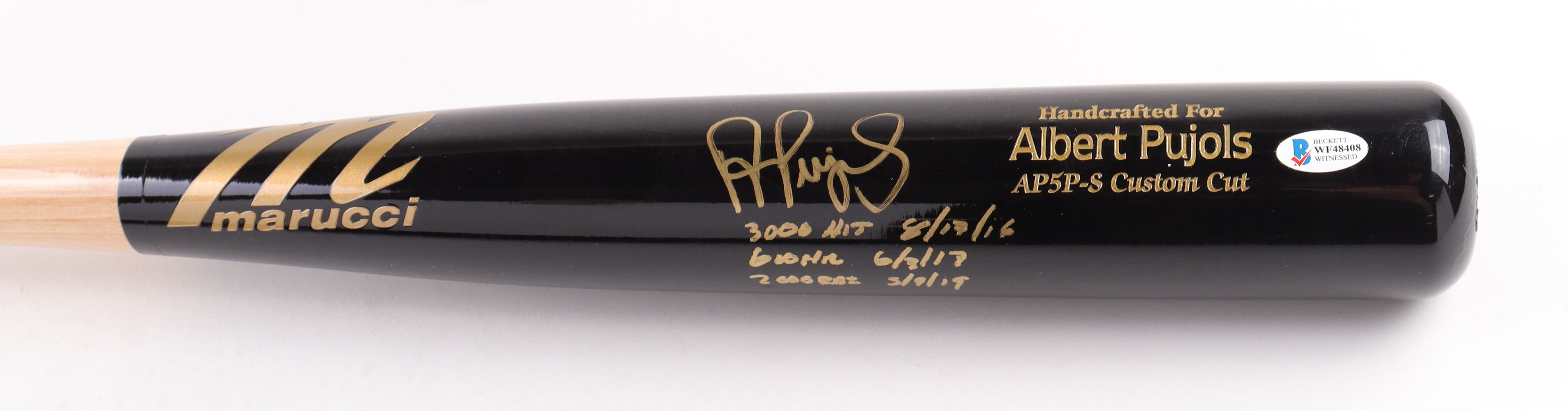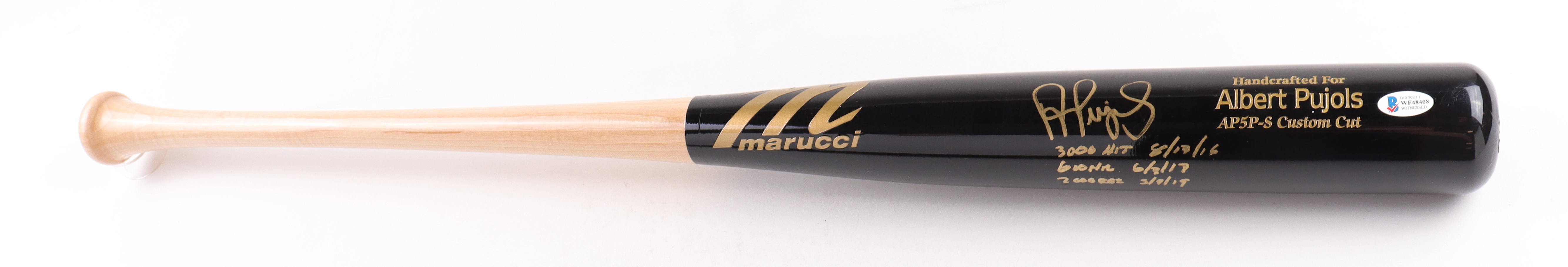 Albert Pujols Signed Marucci Player Model Baseball Bat Inscribed "3000 Hit 8/17/16", "610 HR 6/3/17" & "2000 RBI 5/9/19" (Beckett)