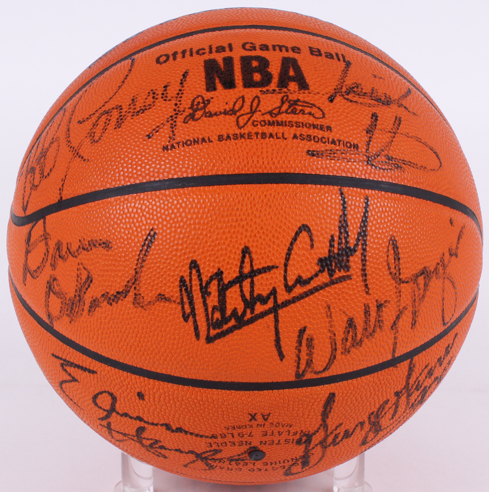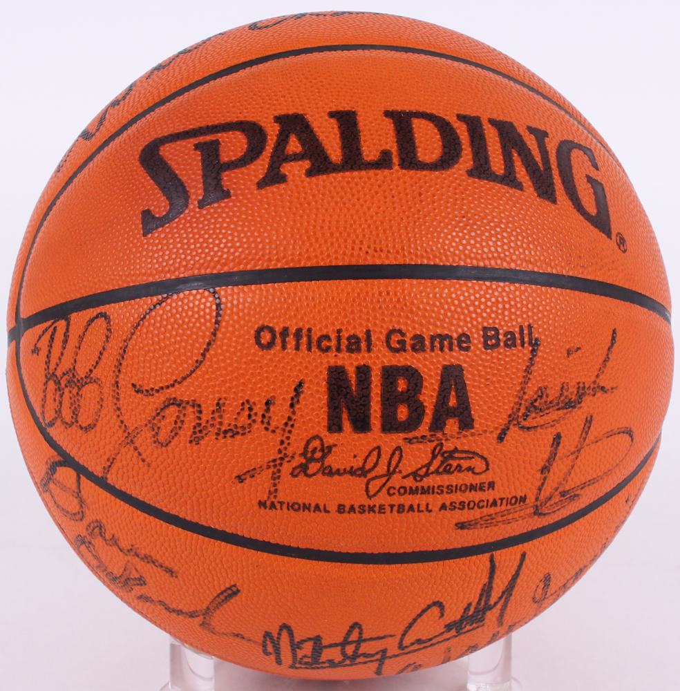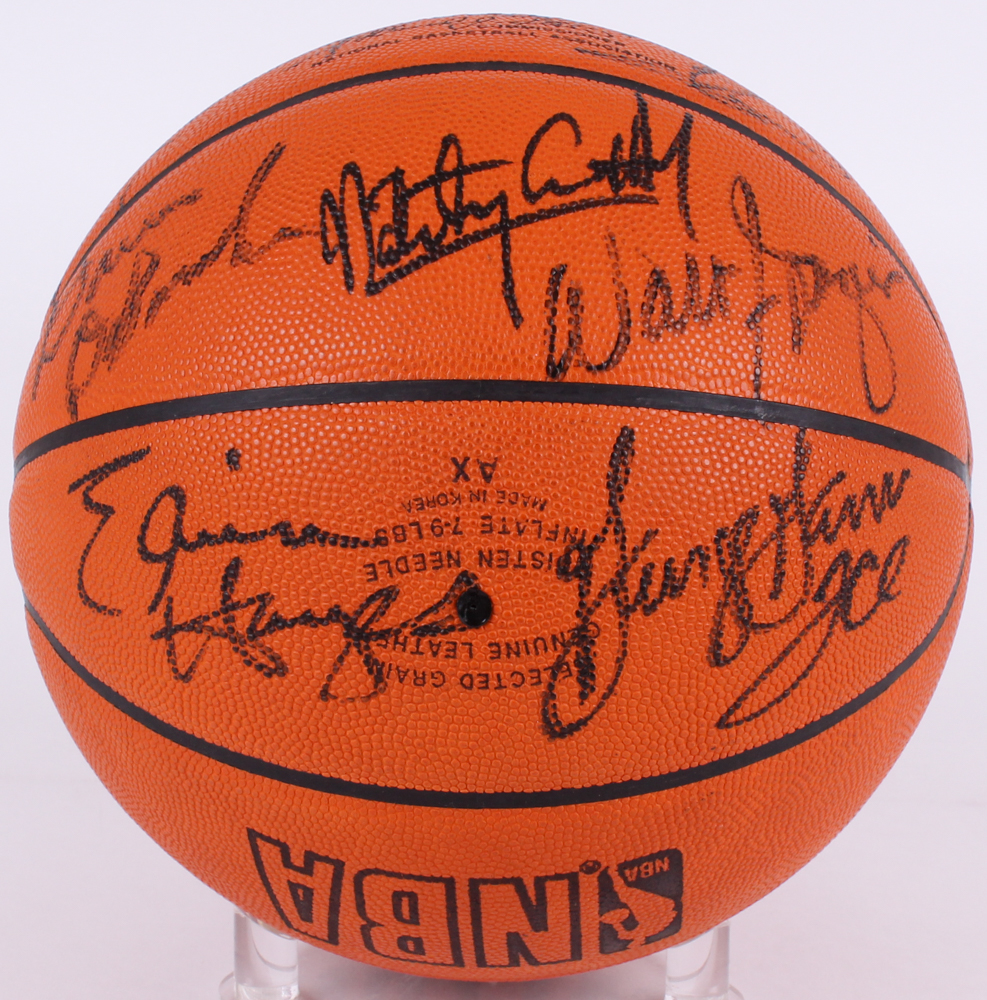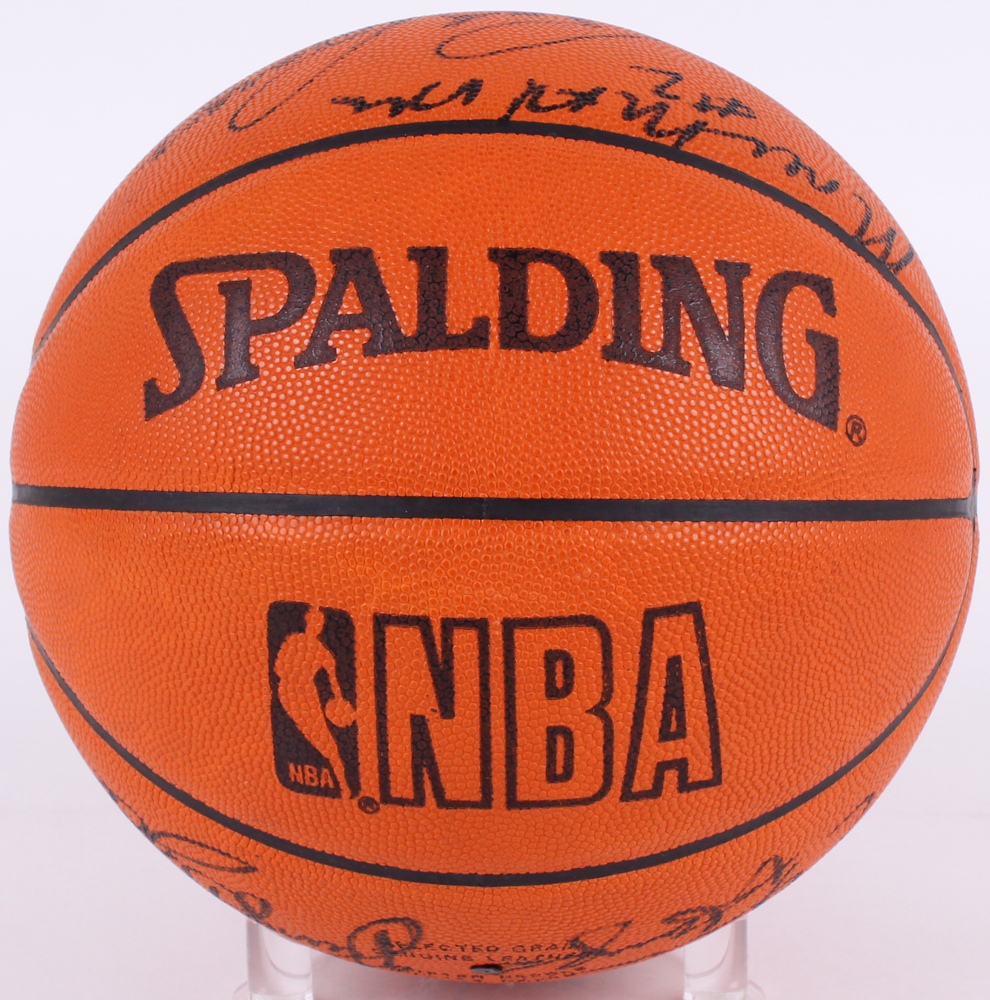 NBA HOF Basketball Signed by (10) with Wilt Chamberlain, Moses Malone, Rick Barry, Bob Cousy, Isiah Thomas, Dave DeBusschere, Nate Archibald, Walt Frazier, Elvin Hayes & George Gervin (JSA ALOA)