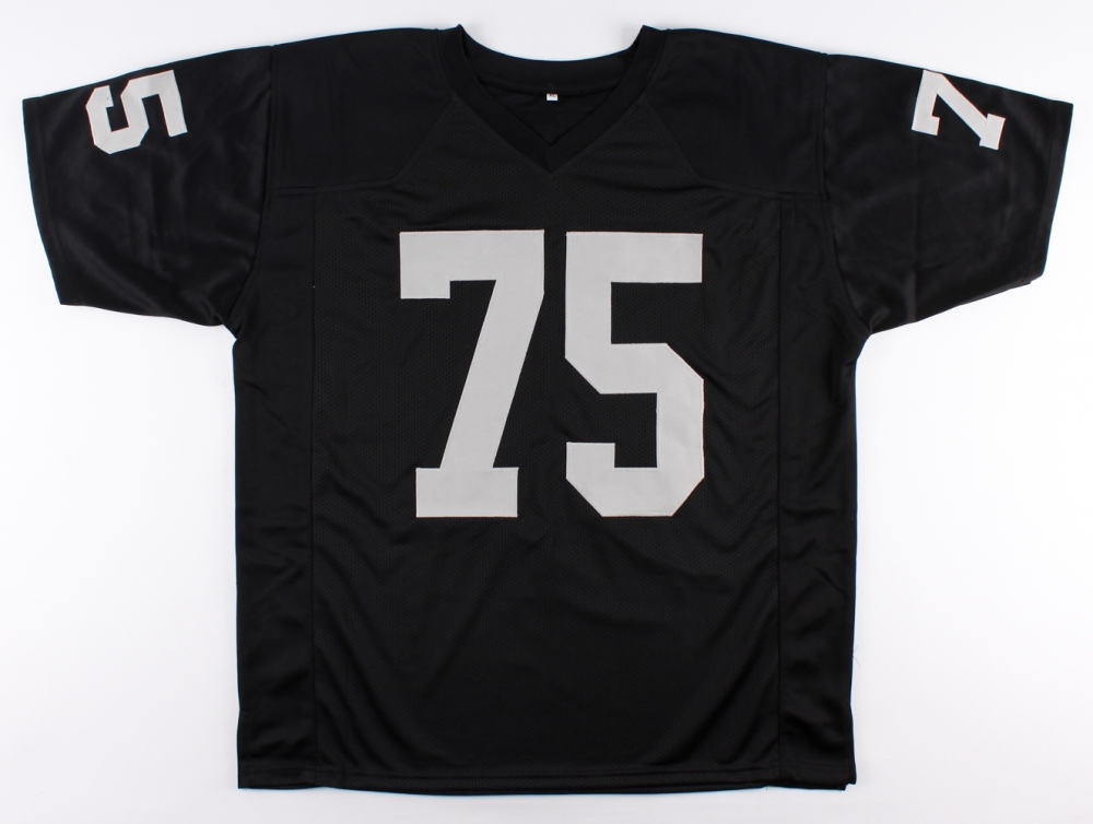 Custom on-field style jersey. Everything is sewn on, size XL. Hand-signed in black felt-tip pen by Howie Long (Raiders HOF).