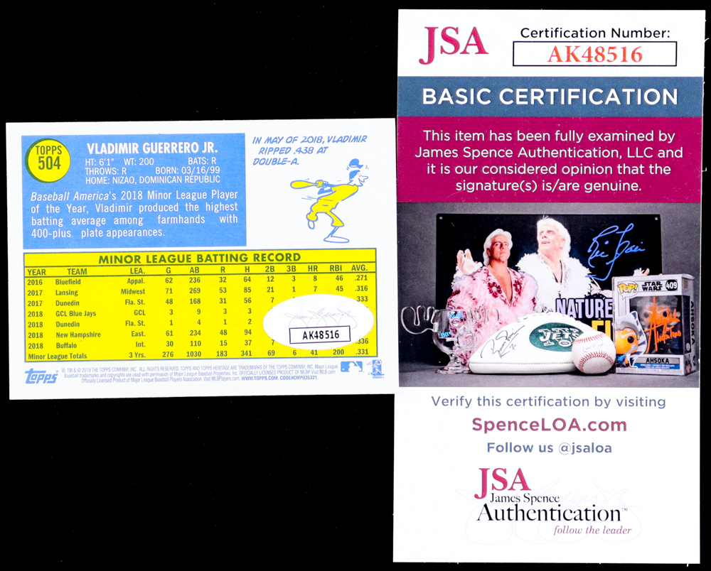 Vladimir Guerrero Jr. Signed 2019 Topps Heritage #504 RC (JSA)