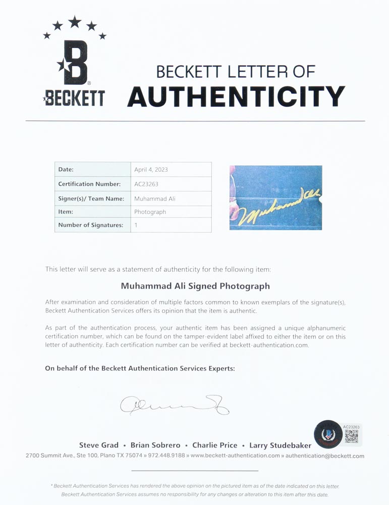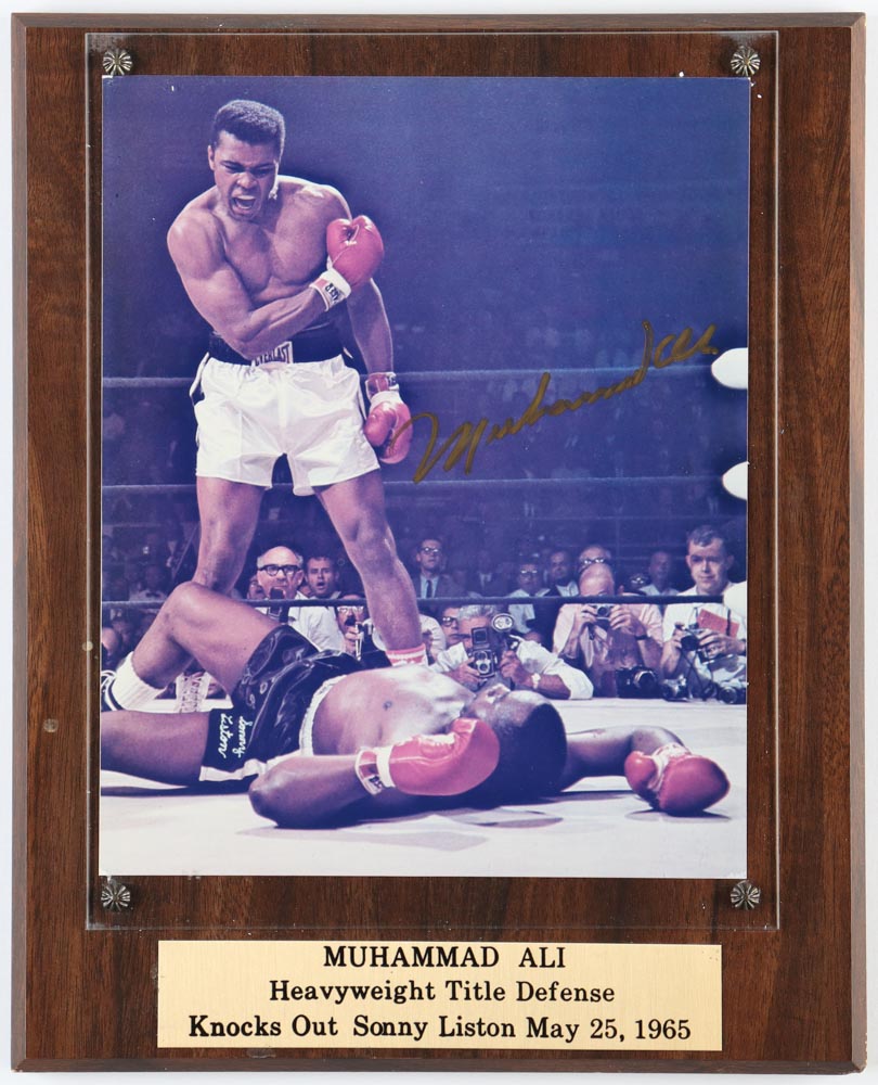 Plaque measures 11" x 13" in size and features a photo that has been hand-signed by Muhammad Ali (D. 2016, HOF).