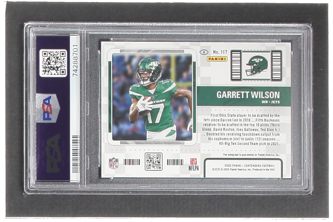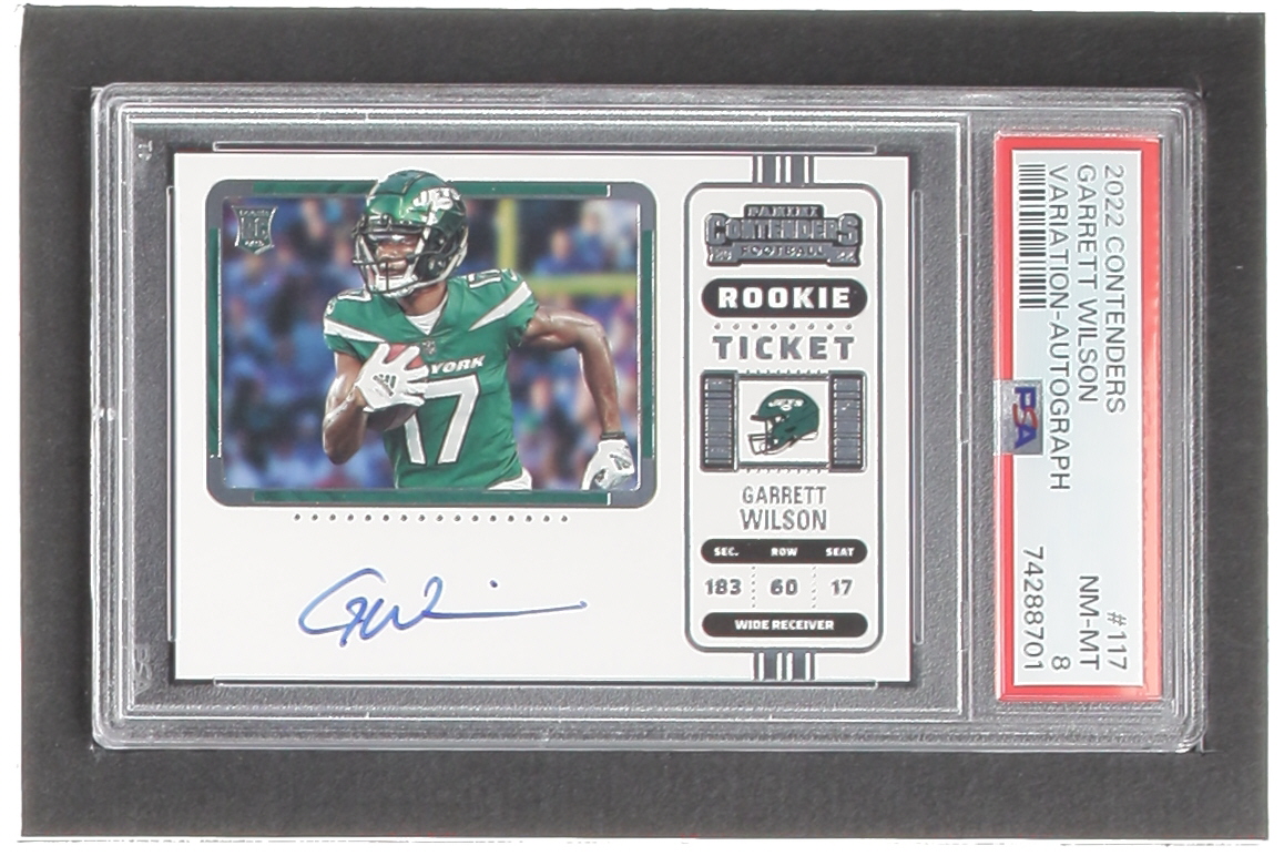 Garrett Wilson 2022 Panini Contenders #117B Autograph VAR RC (PSA 8)