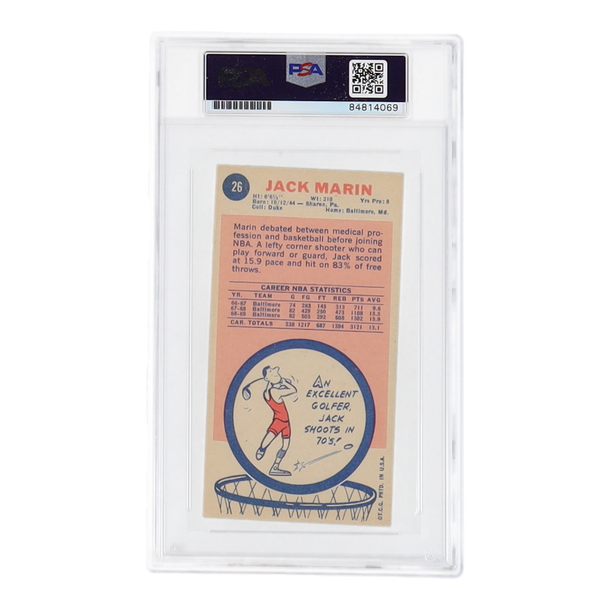 Jack Marin Signed 1969-70 Topps #26 RC (PSA)