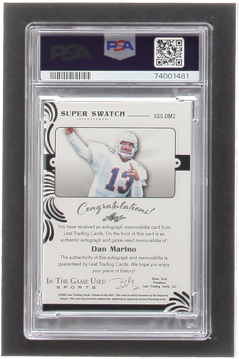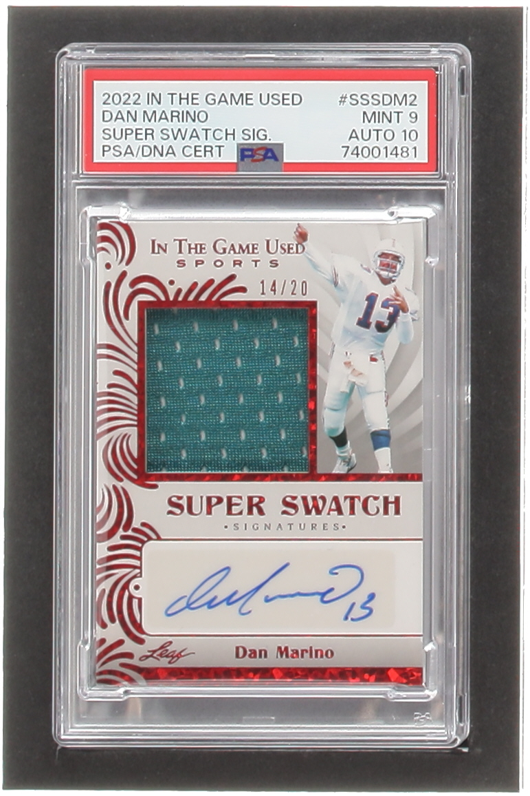 Dan Marino 2022 ITG Used Sports Super Swatch Signatures Red Spectrum #SSSDM2 #14/20 (PSA 9 | Autograph Graded PSA 10)