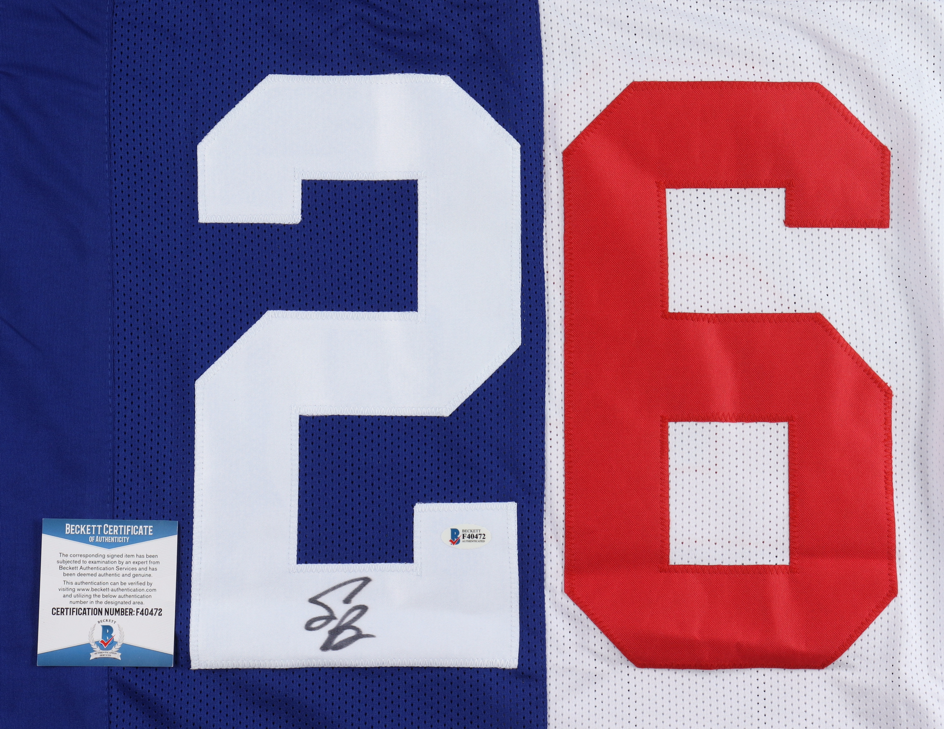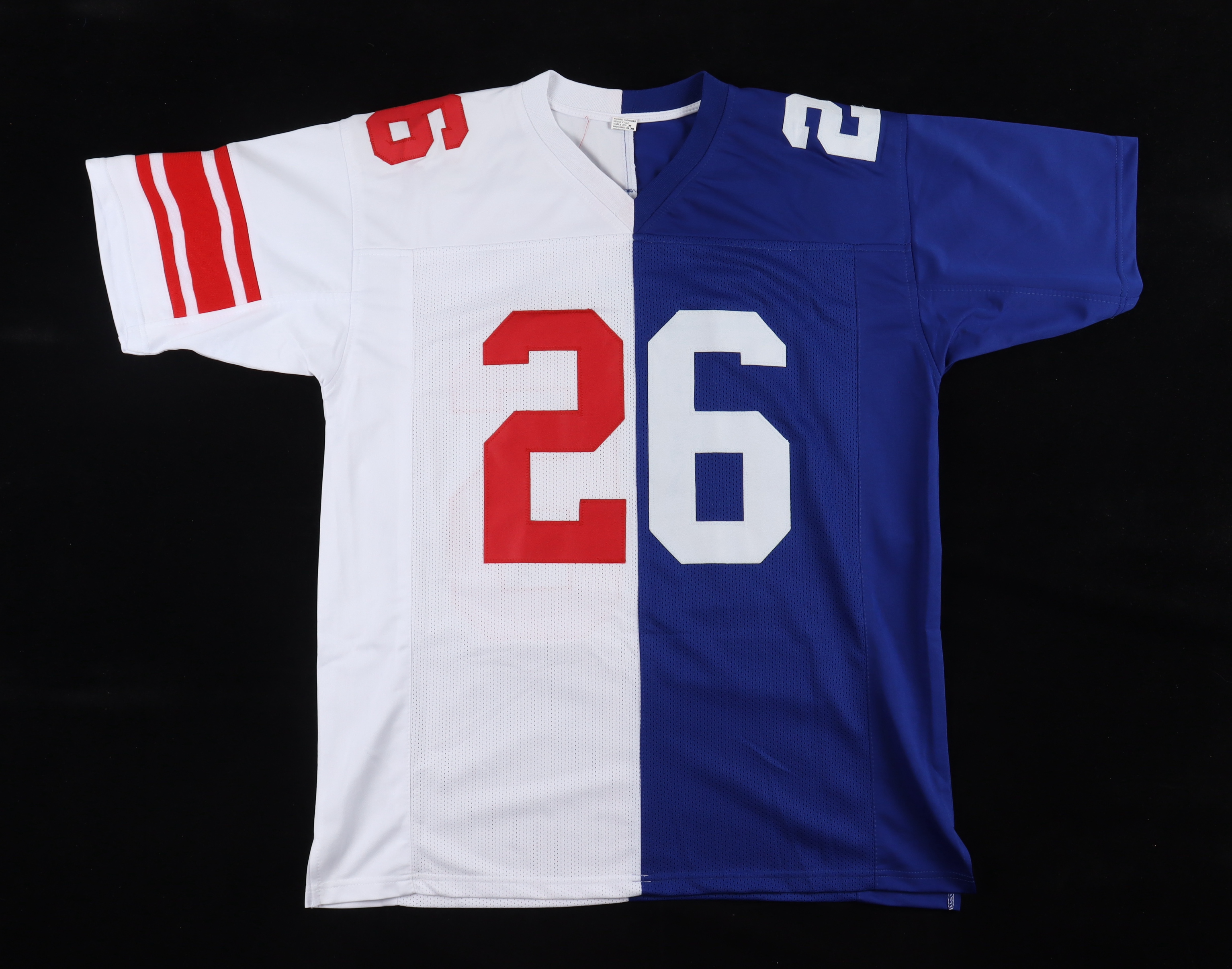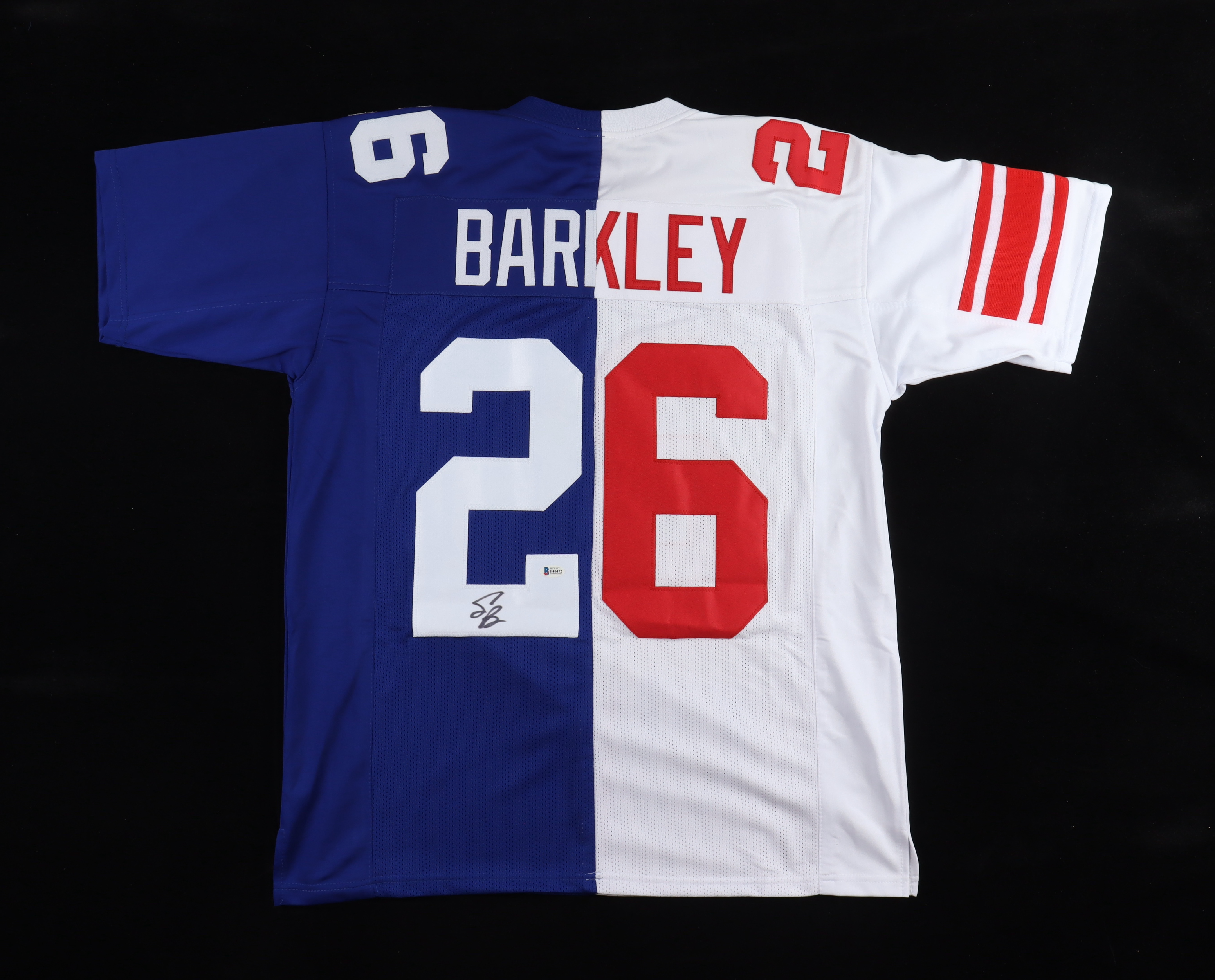 Custom jersey. Everything is sewn on, size XL. Has been hand-signed by Saquon Barkley.