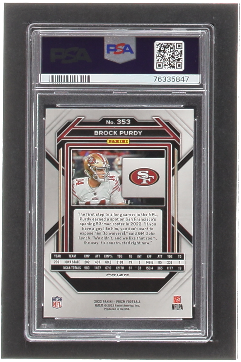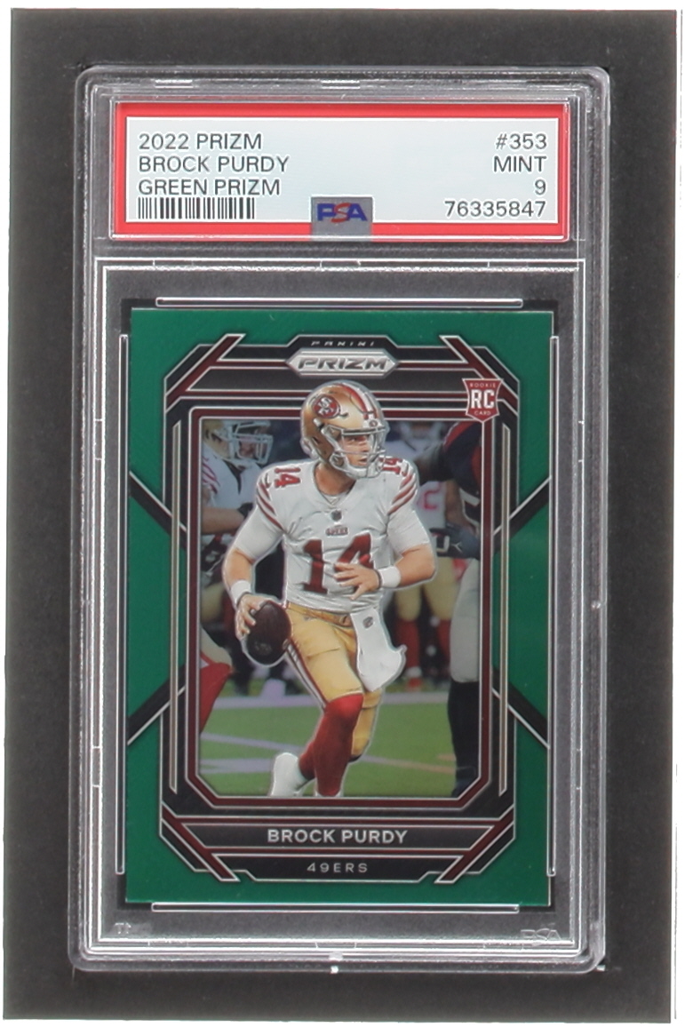 Brock Purdy 2022 Panini Prizm Prizms Green #353 RC (PSA 9)
