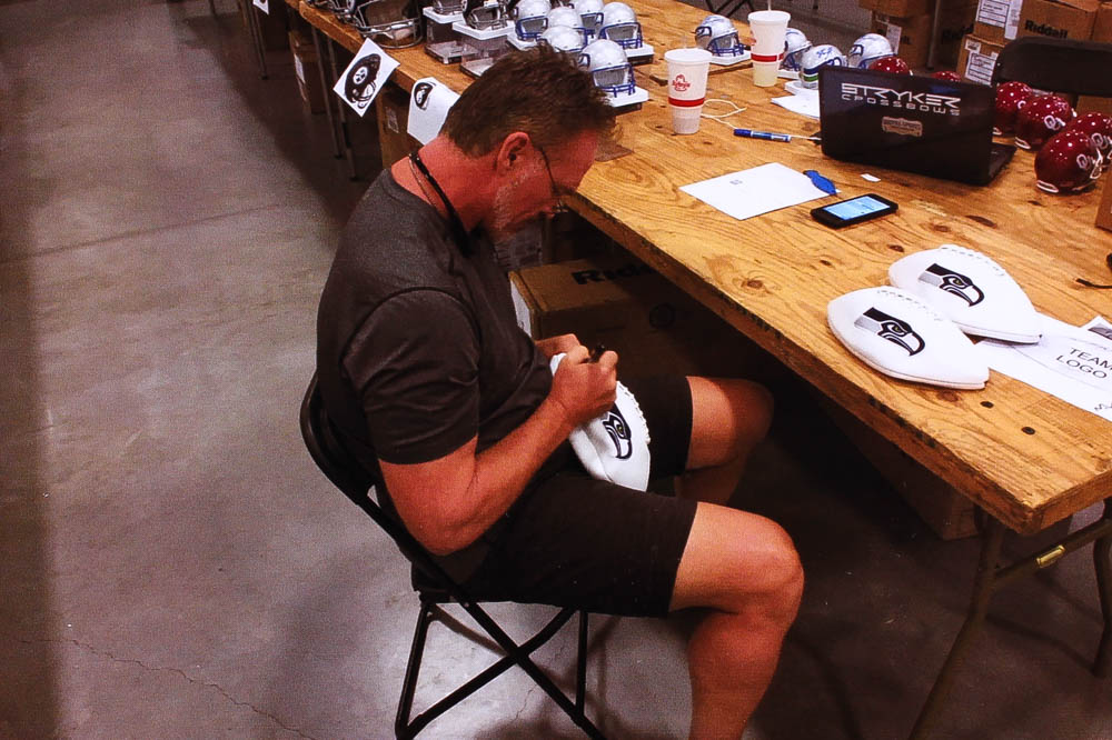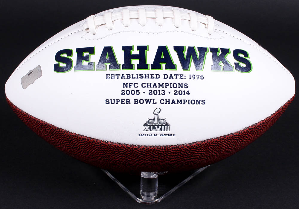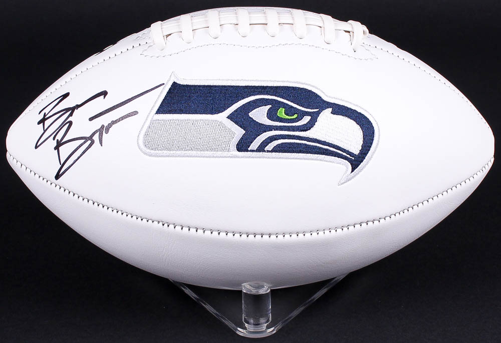 Seattle Seahawks Logo Full-Size Football. Hand-signed in black felt-tip pen by Brian Bosworth.