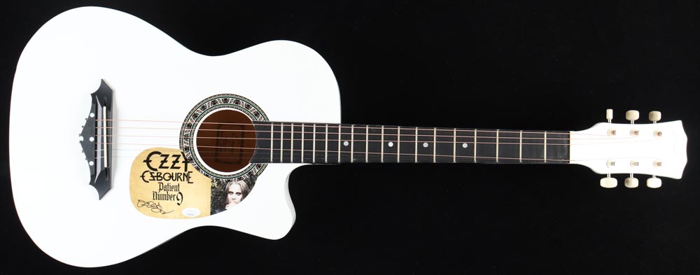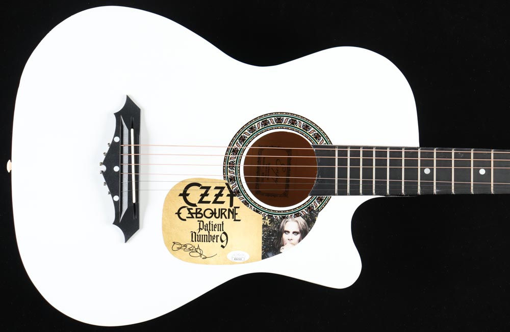 Guitar measures 38” in size has been hand-signed on the pick-guard by Ozzy Osbourne.