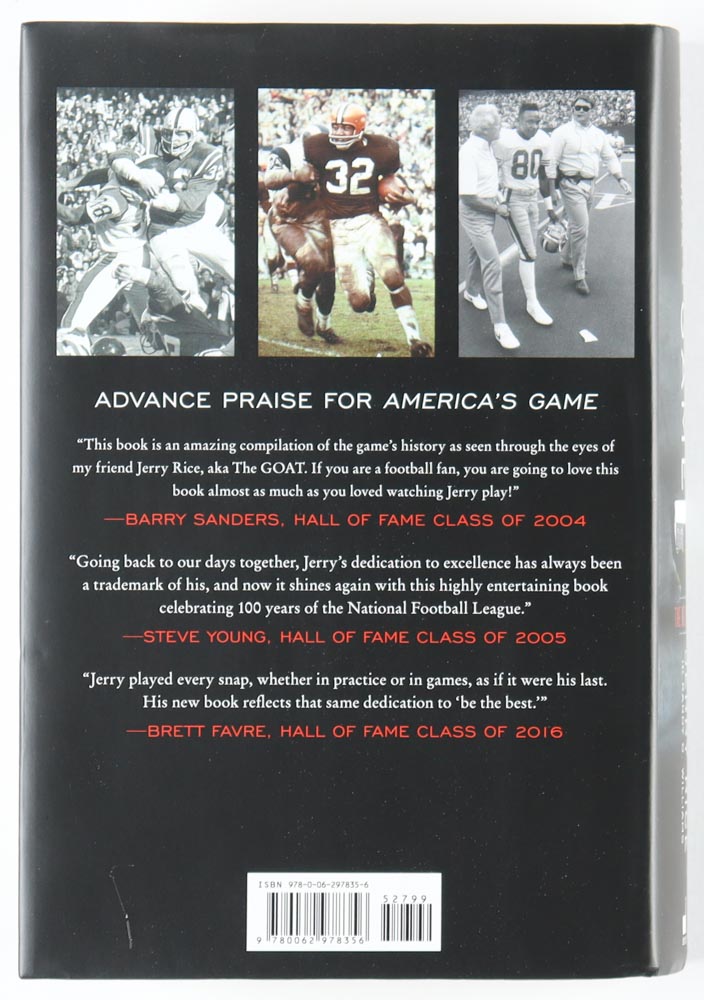 "America's Game" hardcover book has been hand-signed on the title page by Jerry Rice (San Francisco 49ers, HOF).
