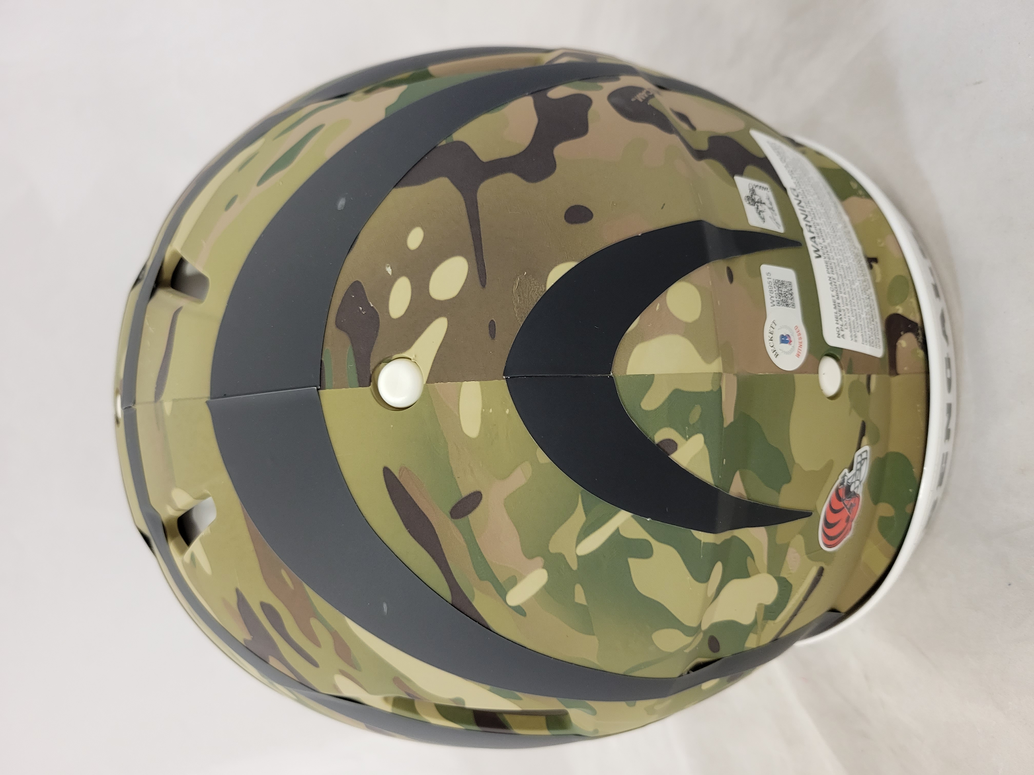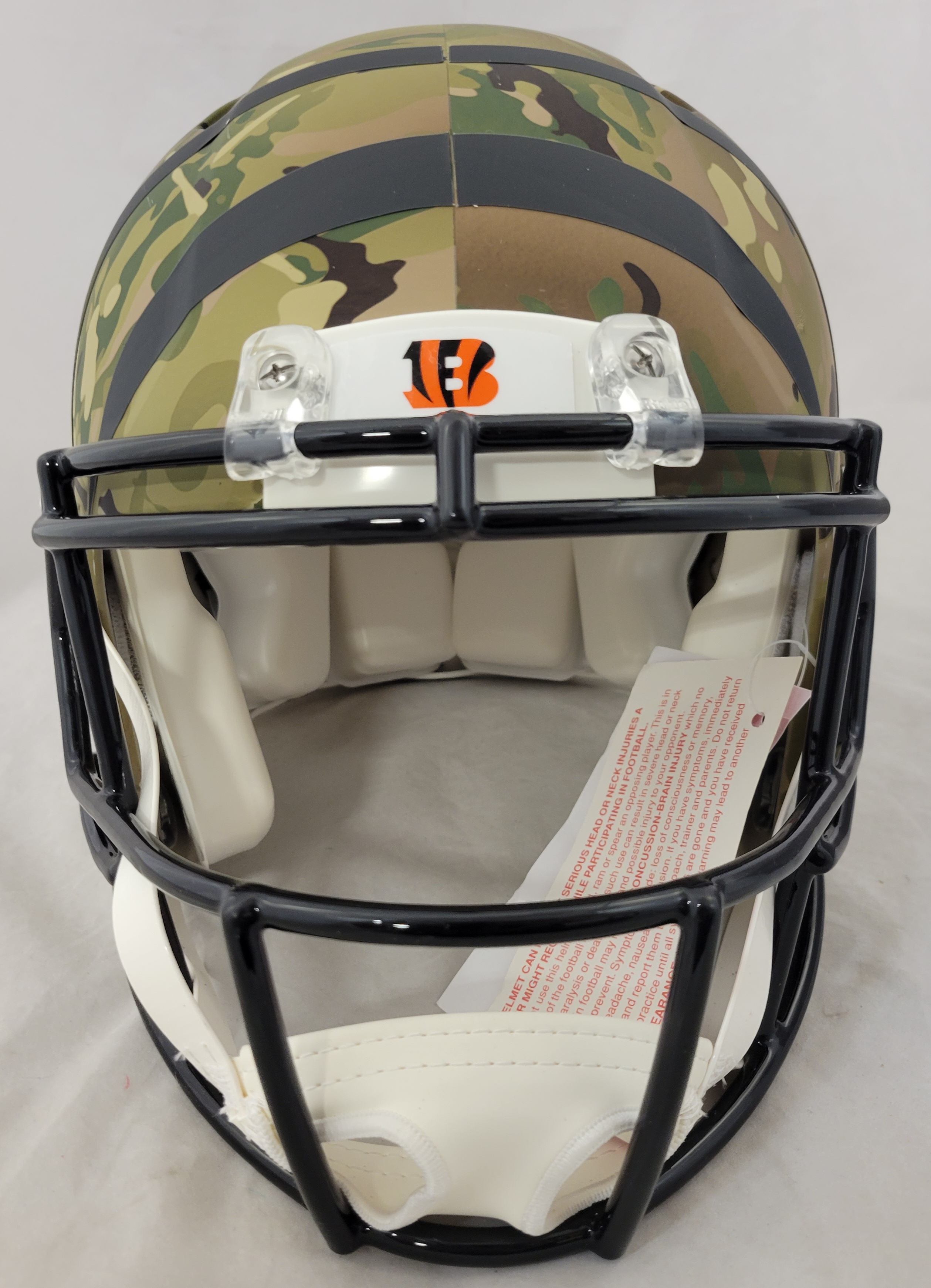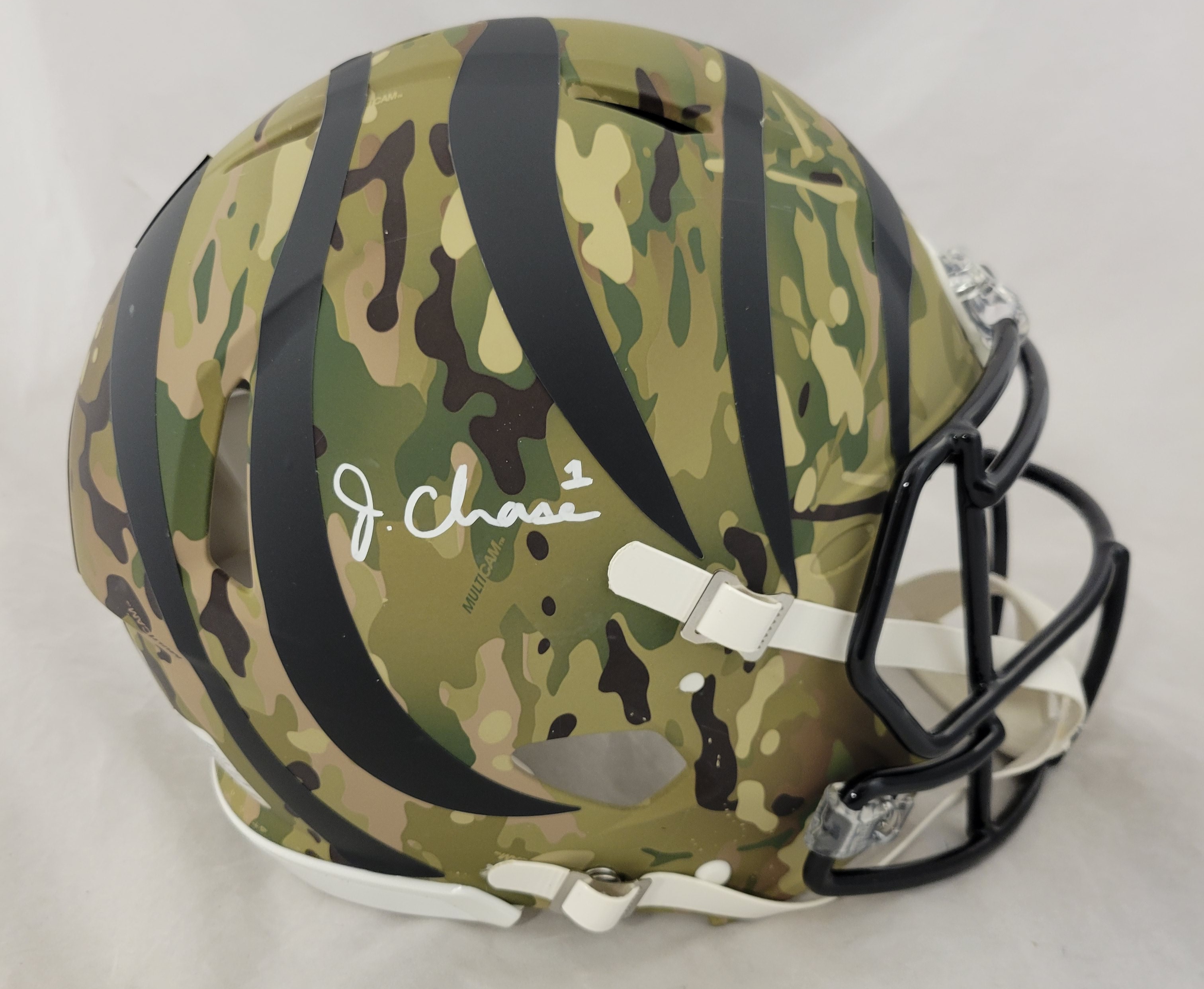 Riddell Cincinnati Bengals full-size authentic, on-field Camo Alternate Speed helmet. Hand-signed by Ja'Marr Chase.