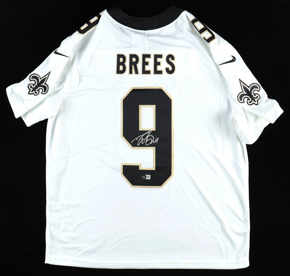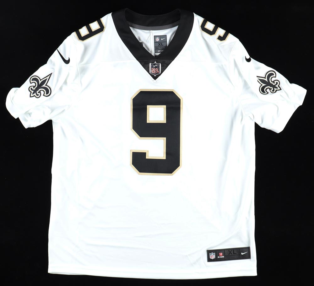 Nike jersey with everything sewn on, size XL. Hand-signed by Drew Brees (New Orleans Saints).