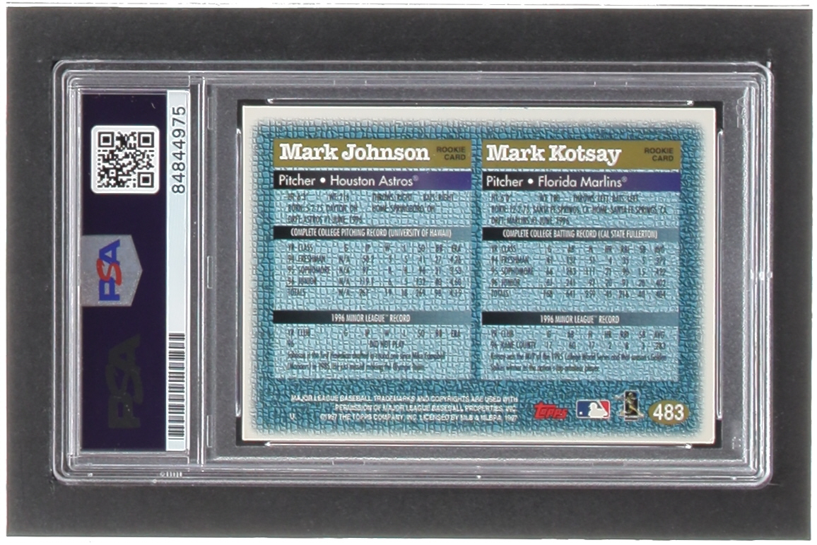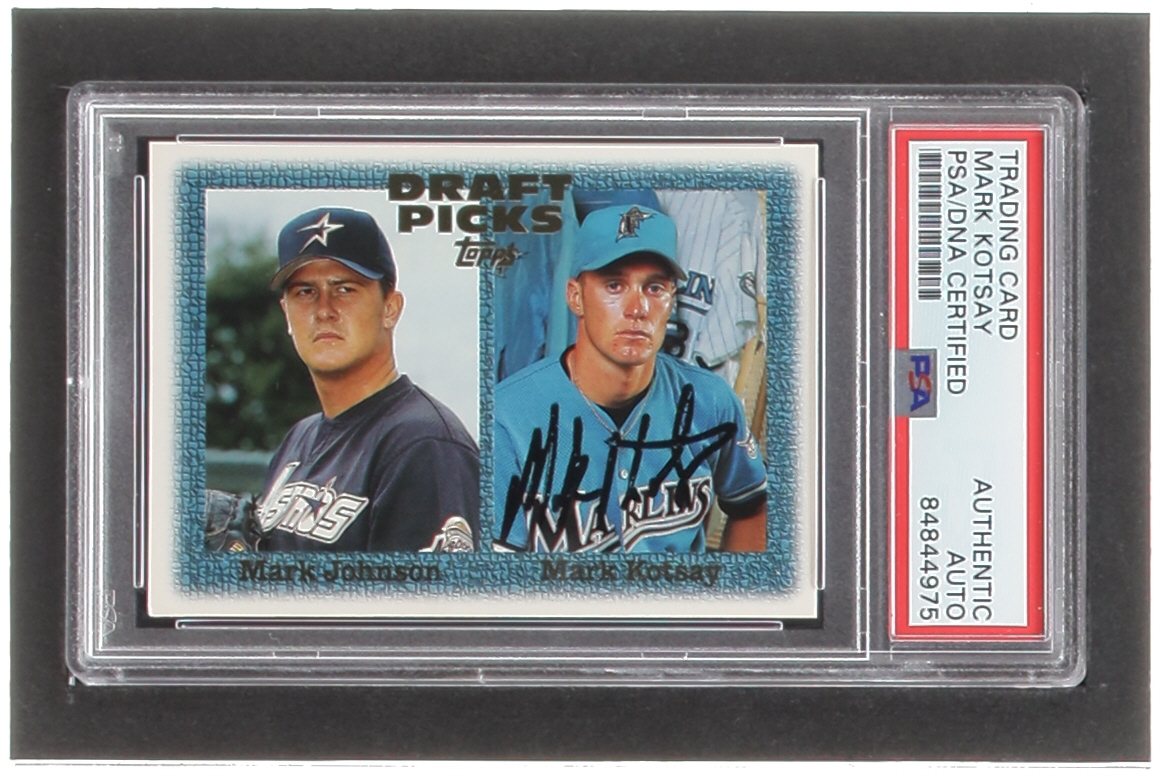 Mark Kotsay Signed 1997 Topps #483 M.Kotsay / M.Johnson RC (PSA)