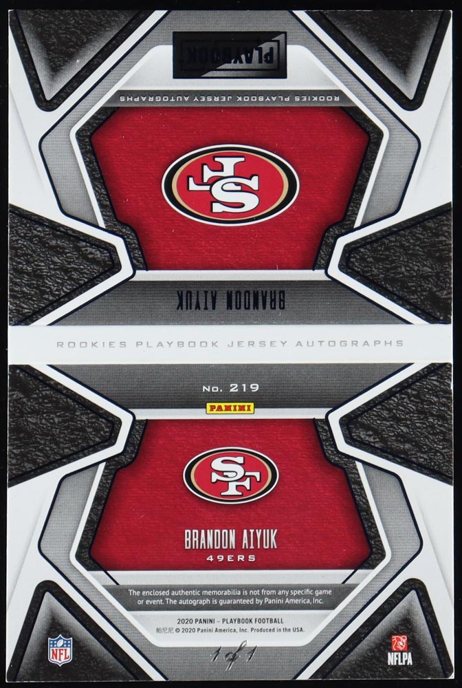 Brandon Aiyuk 2020 Panini Playbook Rookies Playbook Jersey Autographs Nike Swoosh #219 #1/1 RC