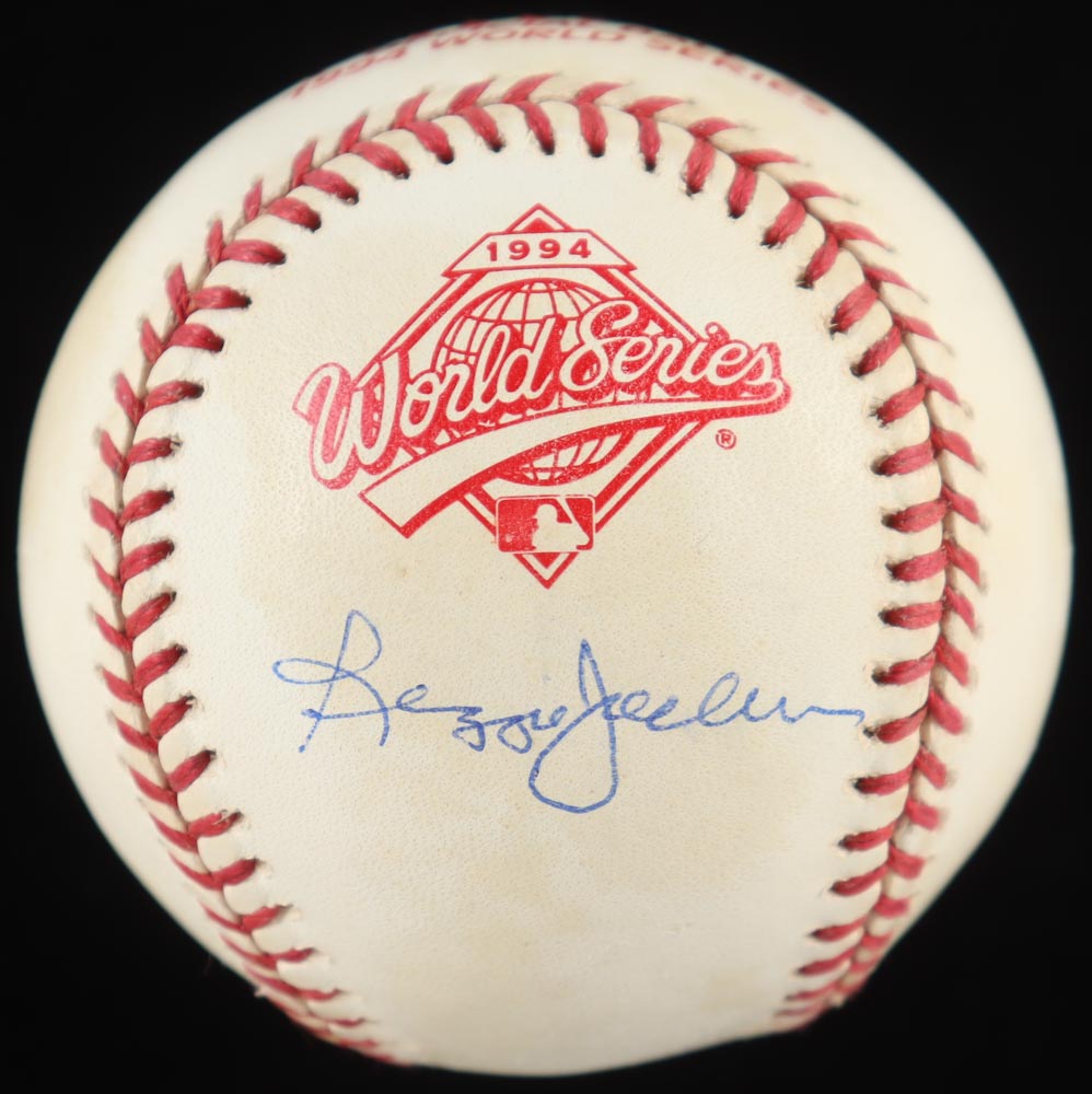 Rawlings Official 1994 World Series baseball. Hand-signed by Reggie Jackson (New York Yankees, HOF). Please note, the baseball is naturally toned. Display case is included as shown.