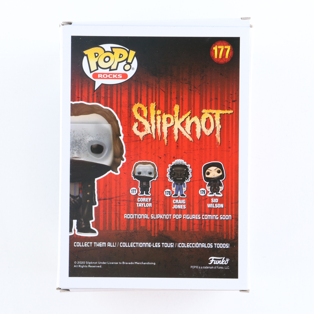 Vinyl figure measures approximately 4" tall and has been hand-signed and inscribed on the original packaging by Corey Taylor (Lead Vocalist).