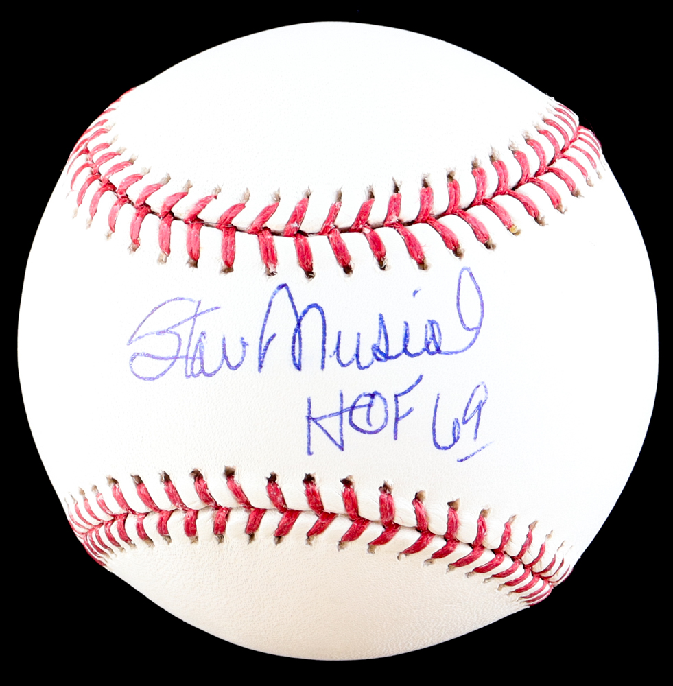 Rawlings Official Major League baseball graded PSA 10. Hand-signed and inscribed by Stan Musial (D. 2013, St. Louis Cardinals, HOF).