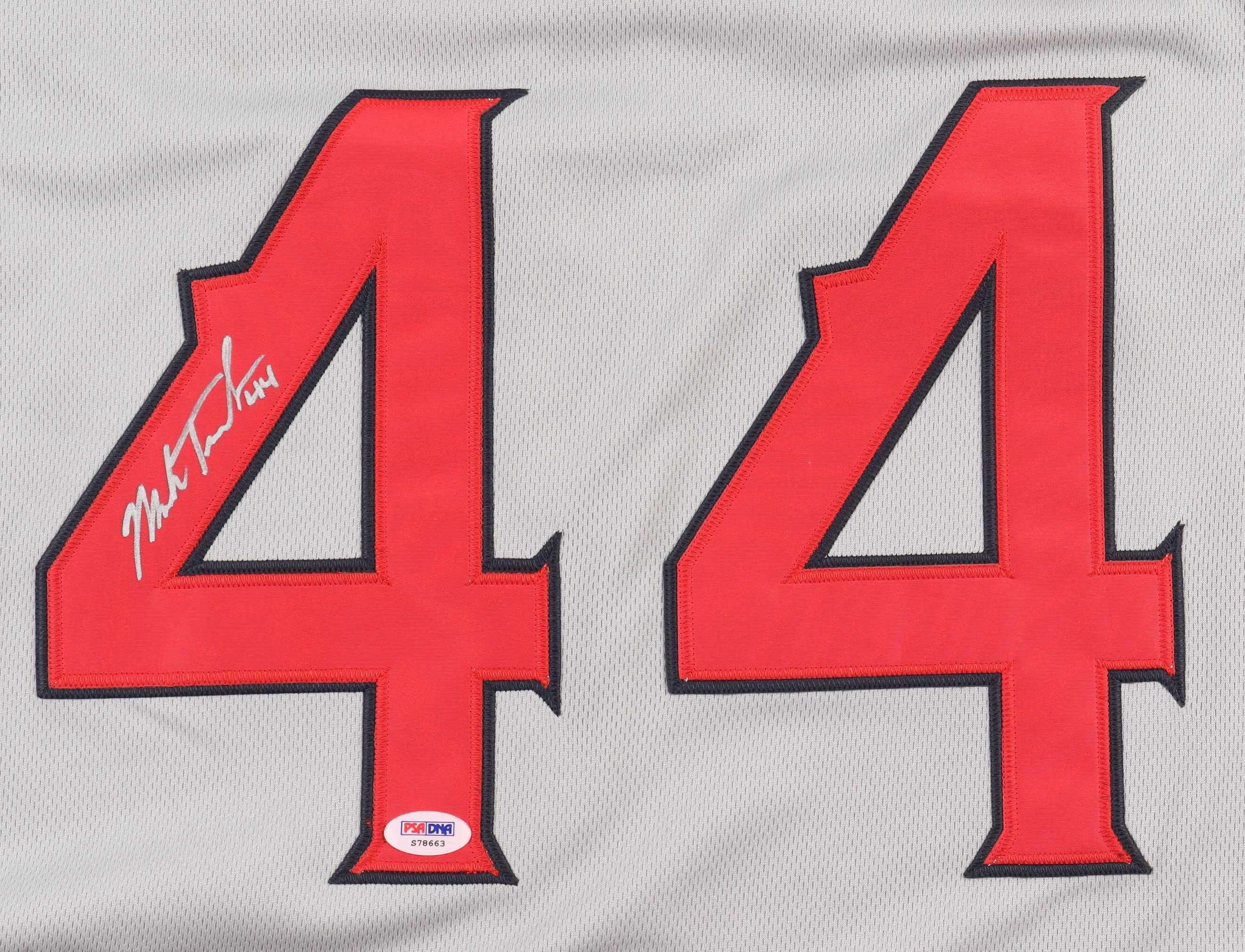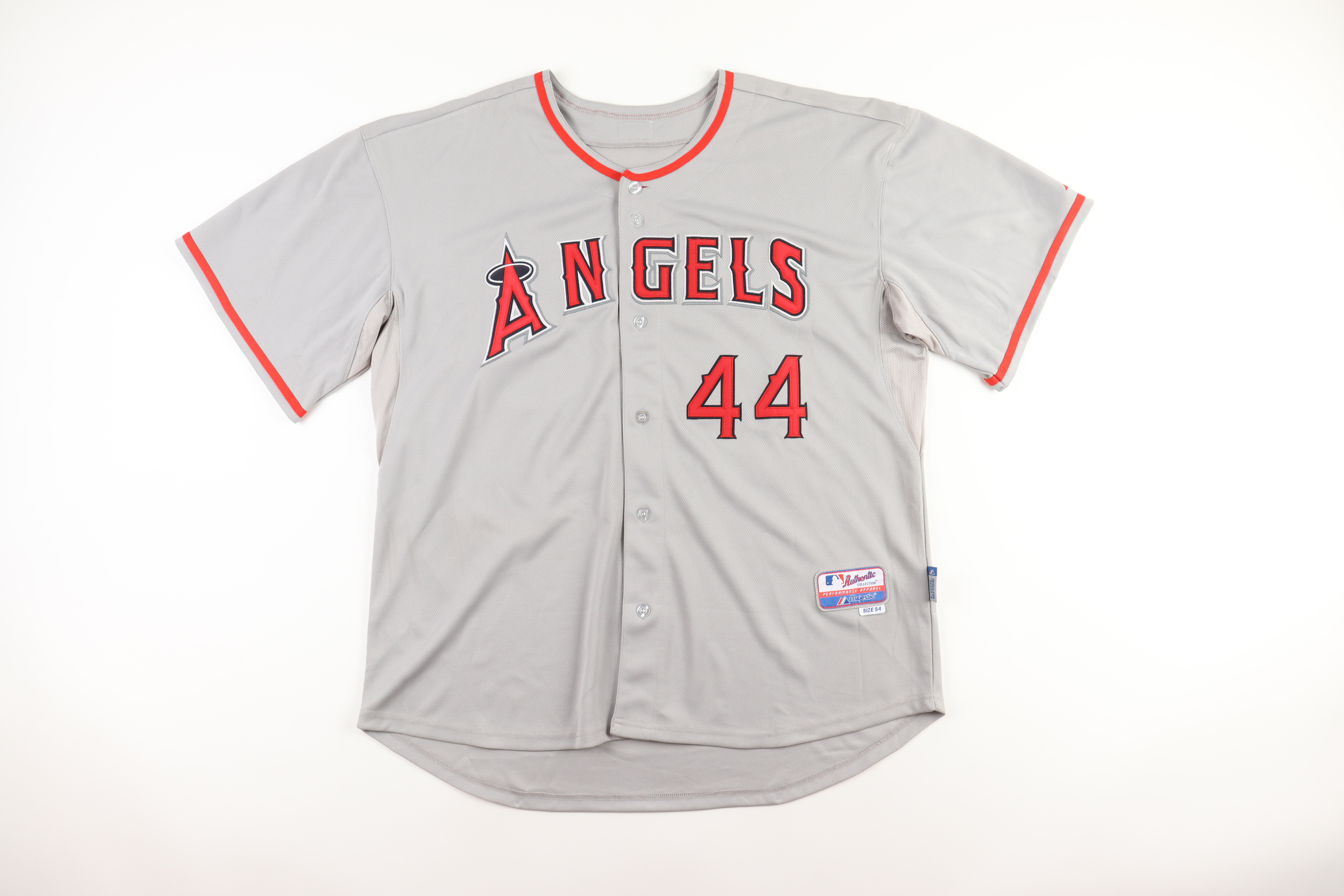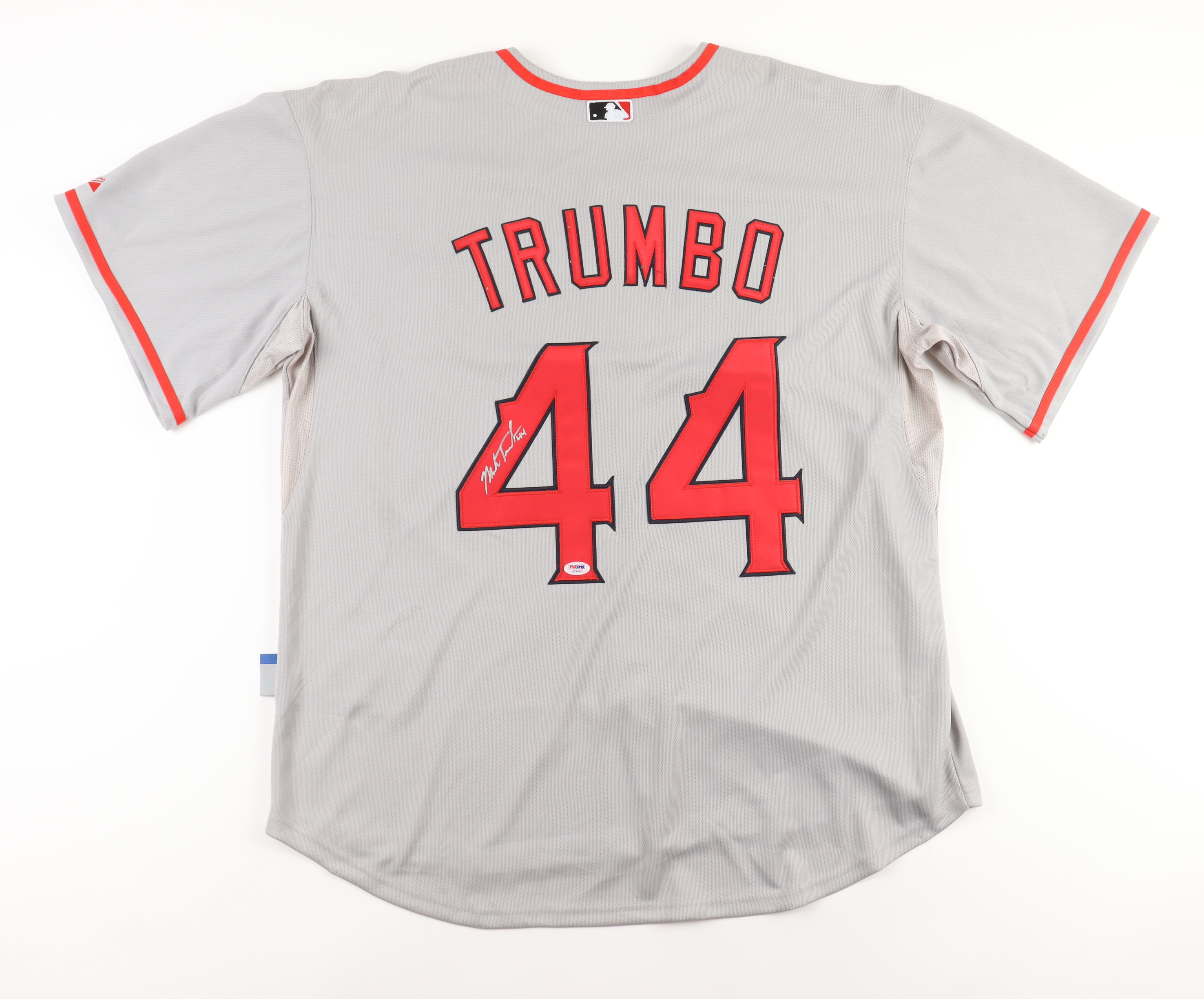 Majestic jersey with everything sewn on, size 54. Hand-signed by Mark Trumbo (Los Angeles Angels).