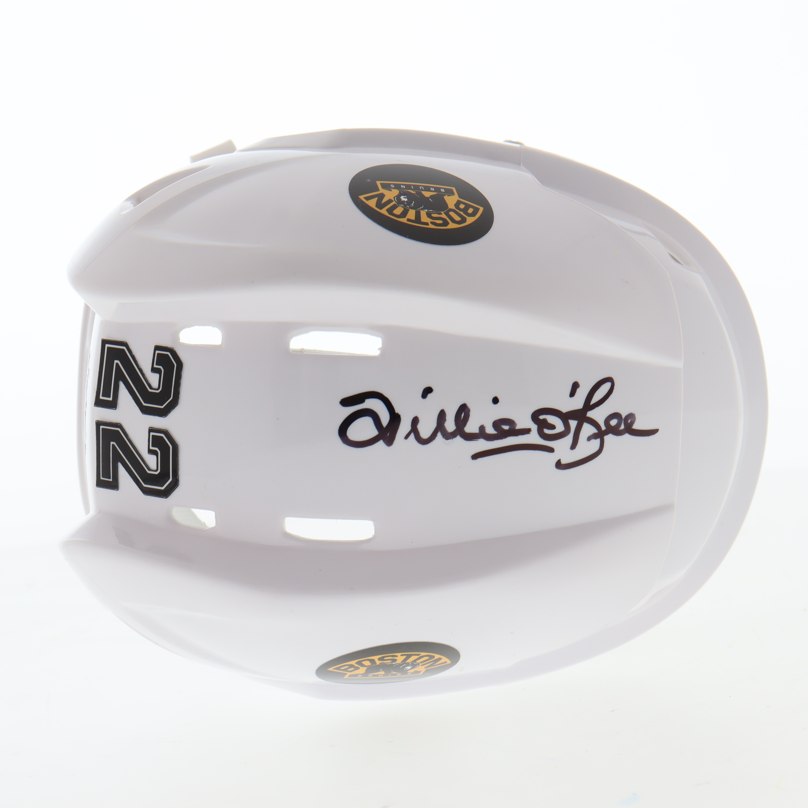 Franklin Boston Bruins mini helmet has been hand-signed by Willie O'ree (HOF).