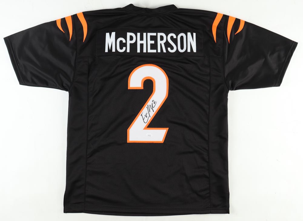 Jersey is size XL. Everything is sewn on. Hand-signed by Evan McPherson.
