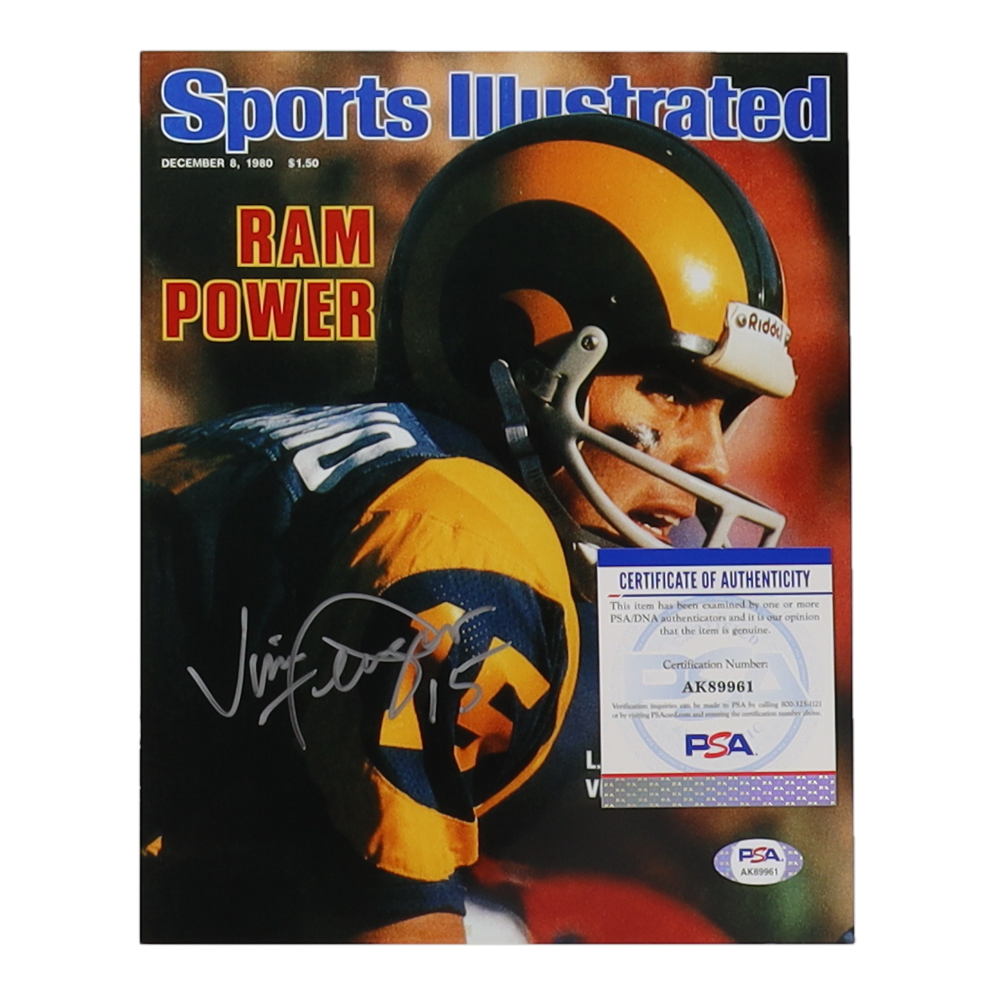 Photo measures 8" x 10" in size and has been hand-signed by Vince Ferragamo (Los Angeles Rams).