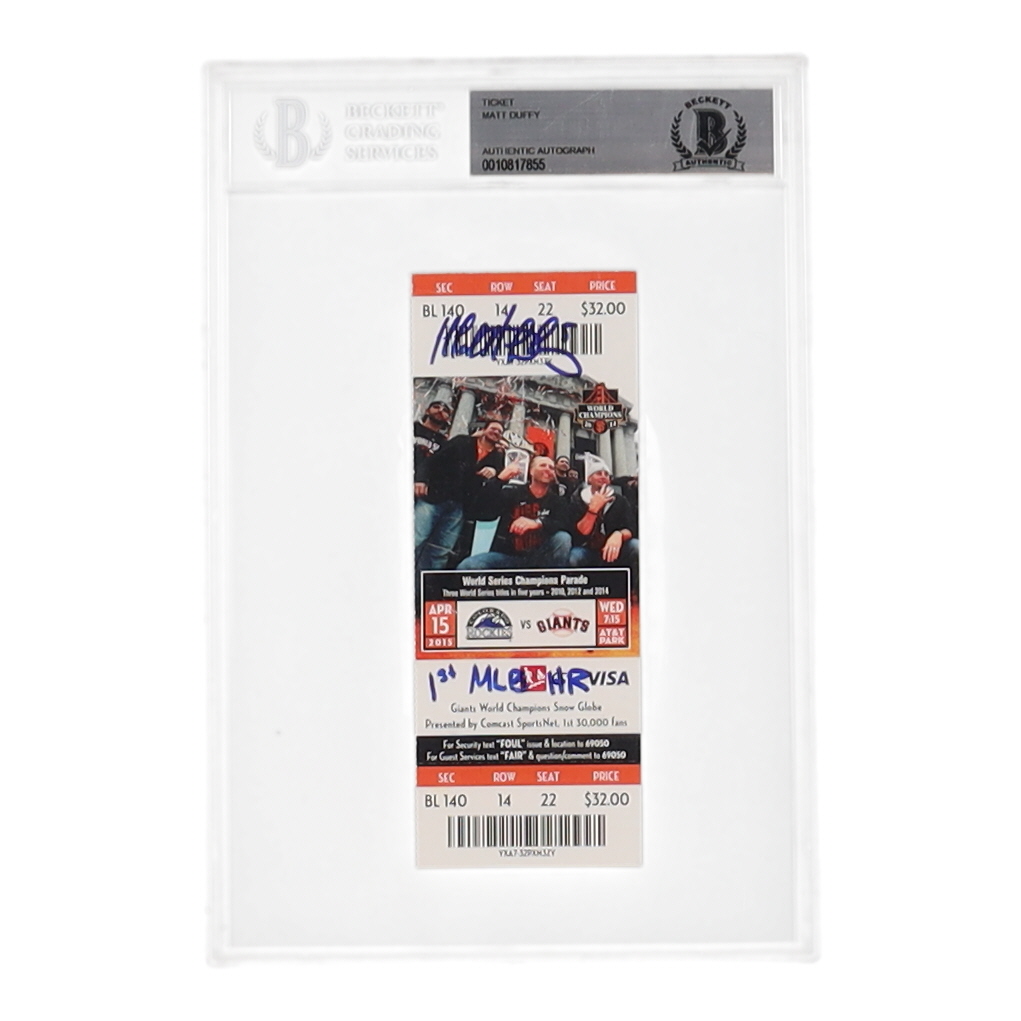 Ticket has been hand-signed and inscribed by Matt Duffy (San Francisco Giants).