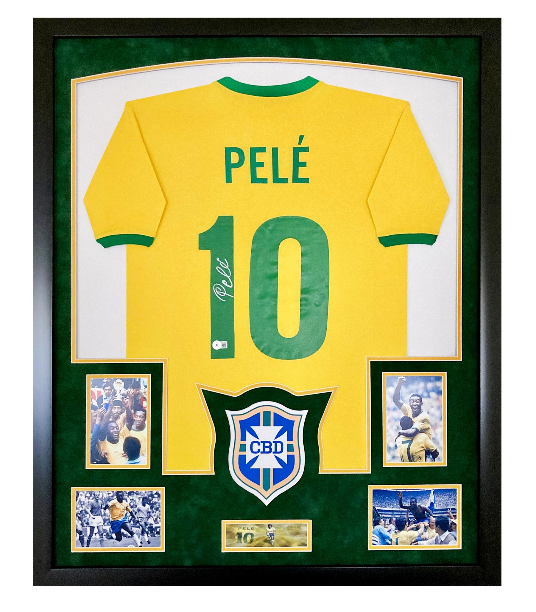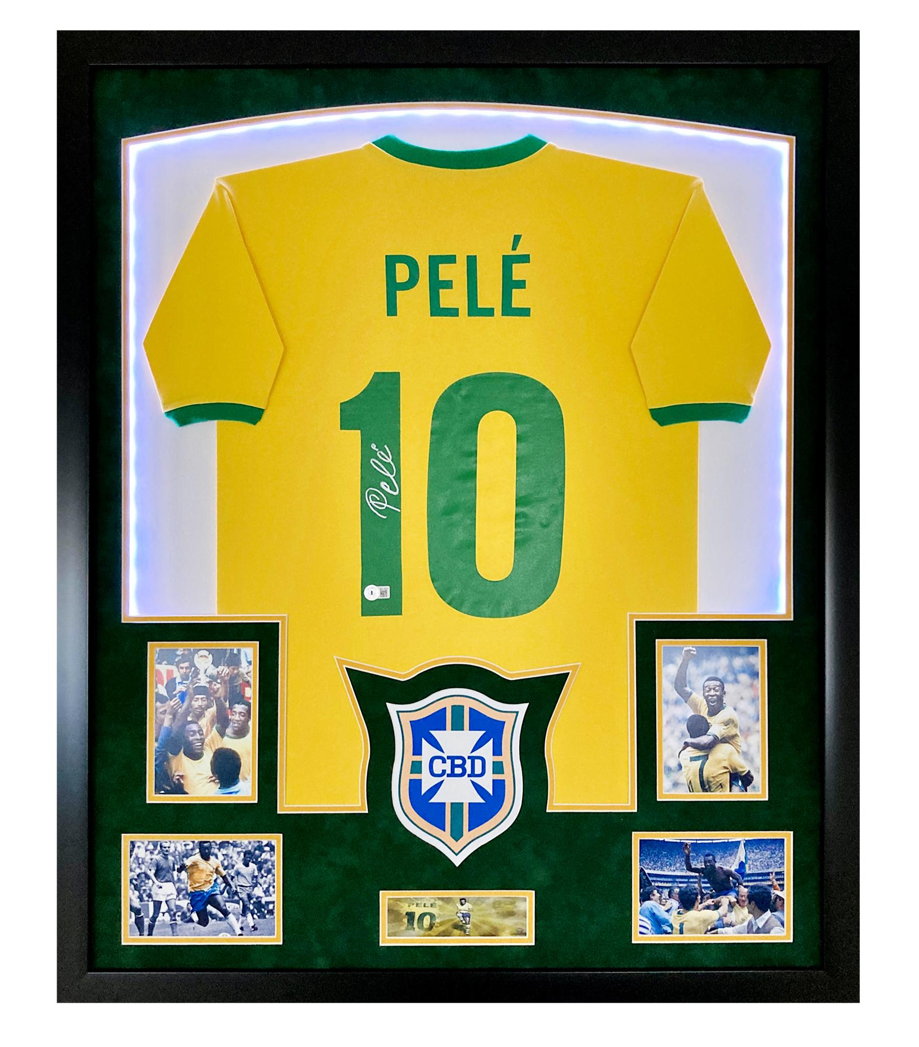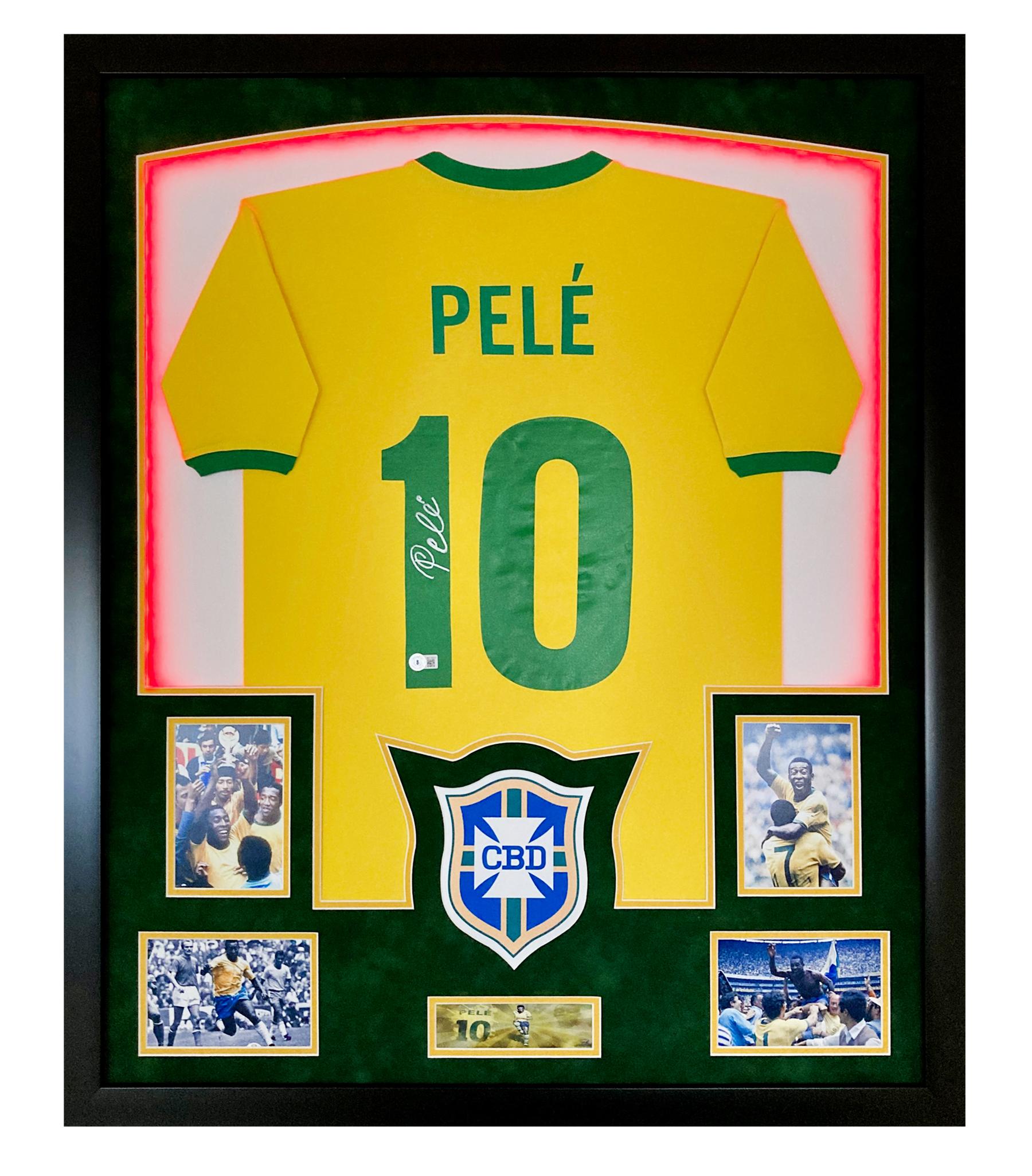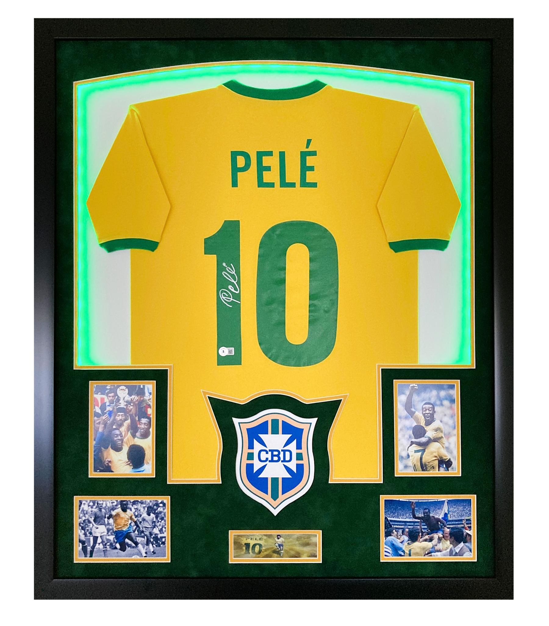Pele Signed Brazil National Team 33x42 Custom Framed Jersey Display with LED Lights (Beckett)